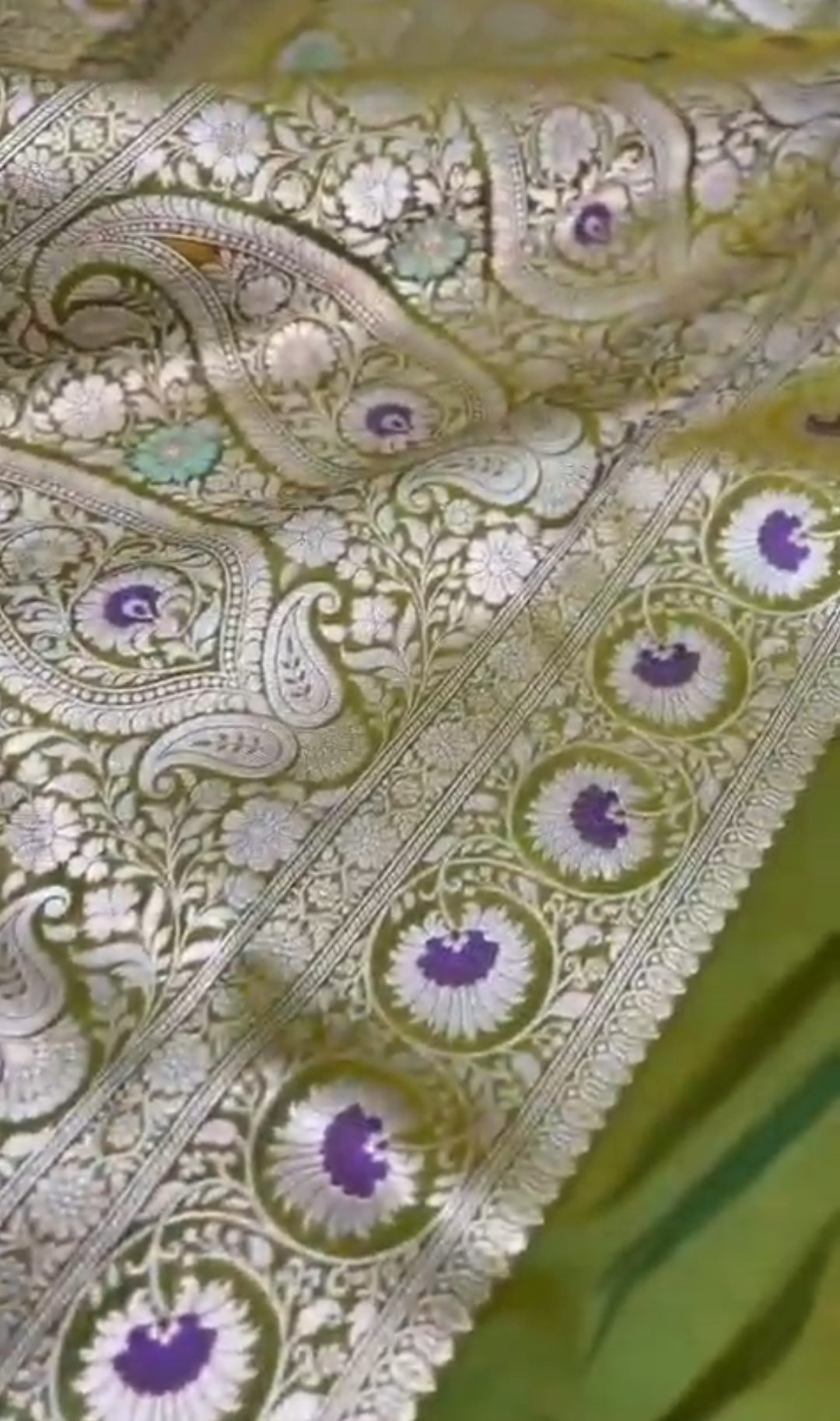 Mehandi Banarasi Handloom Katan Silk Meenakari Saree