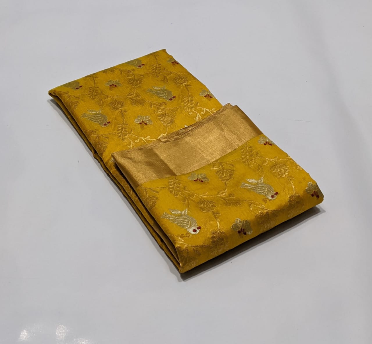 Mustard Yellow Chanderi Handloom Pattu Silk Meenakari Saree