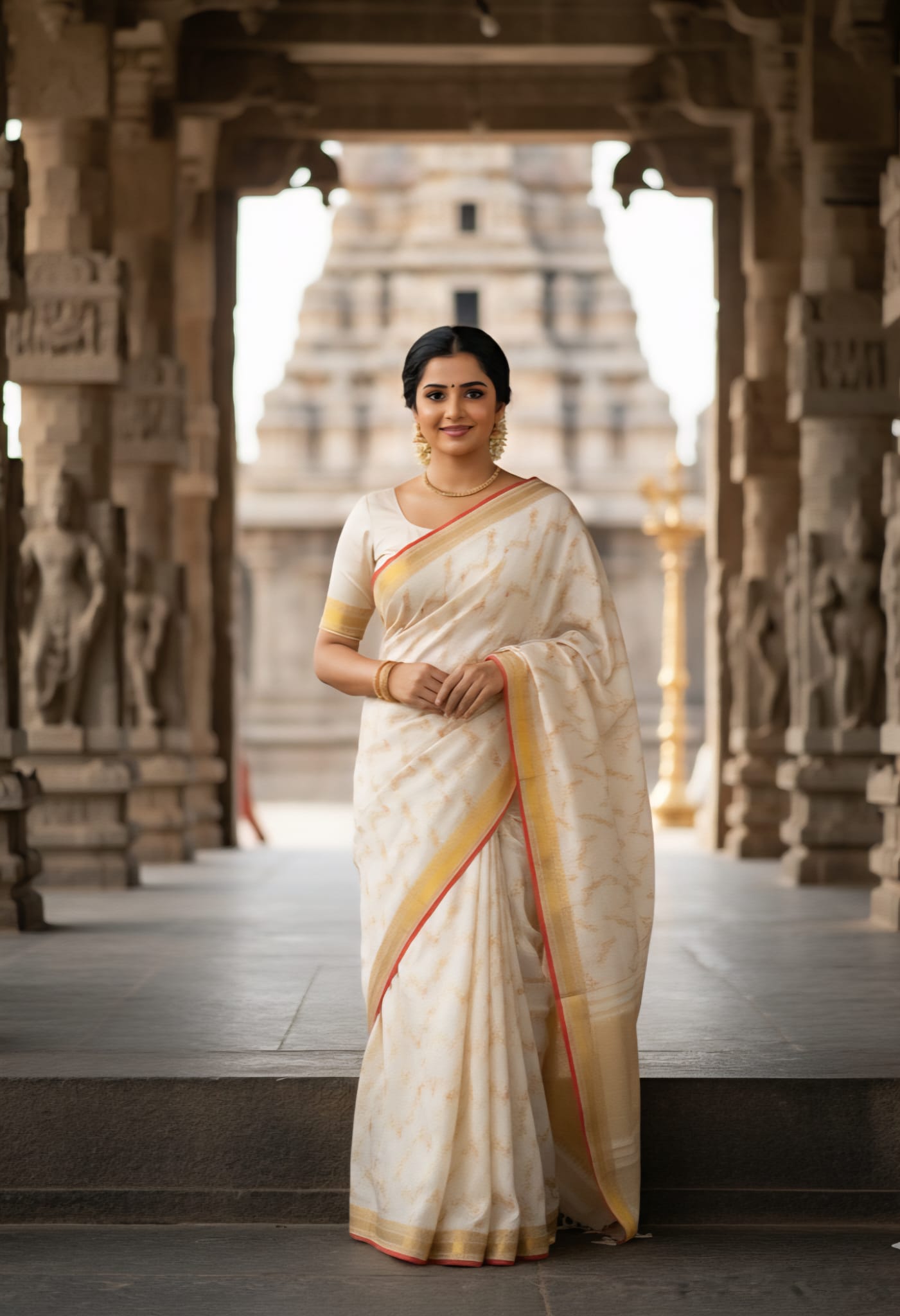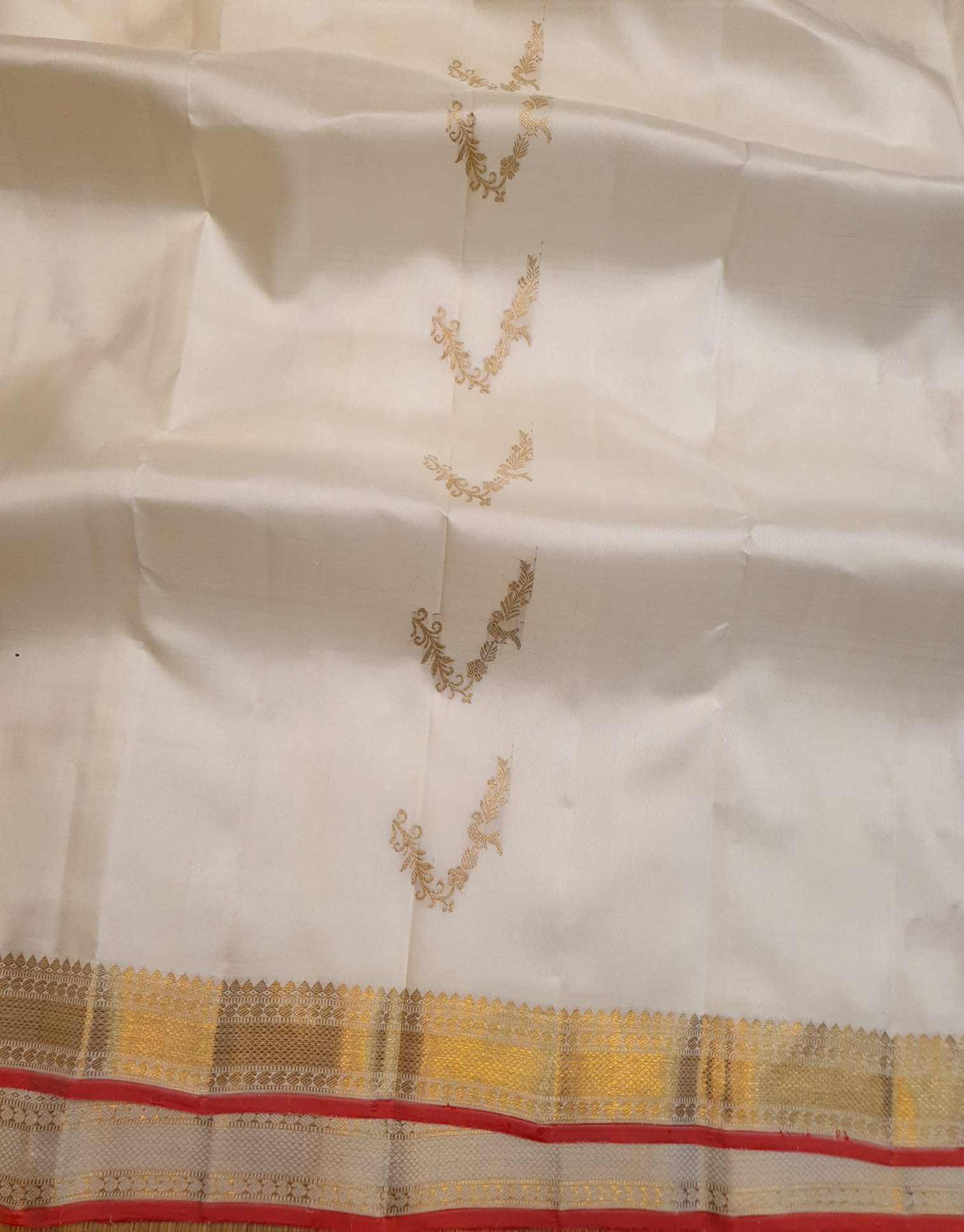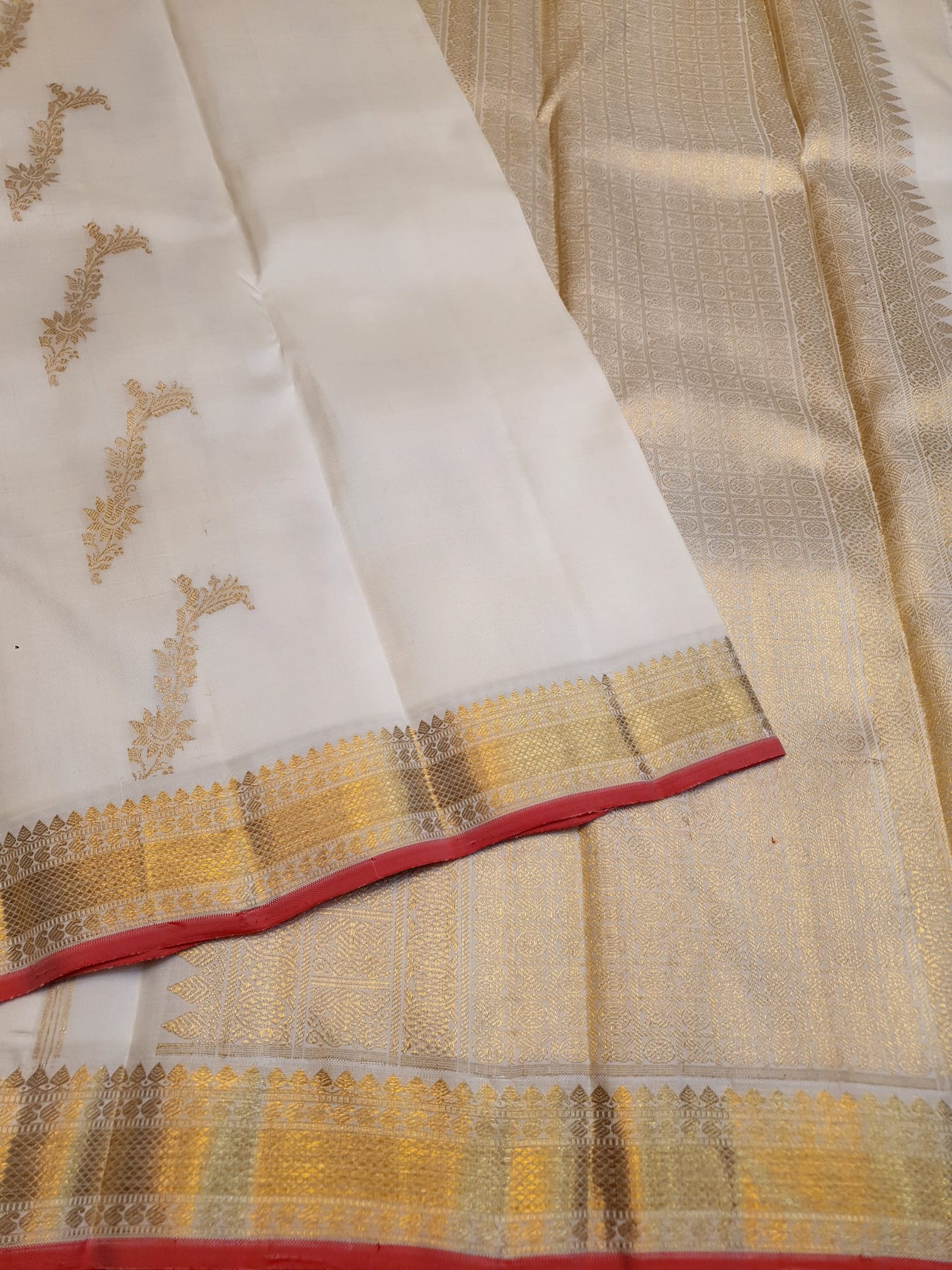 Off White Kanchipuram Handloom 3G Gold Pattu Silk Meenakari Saree