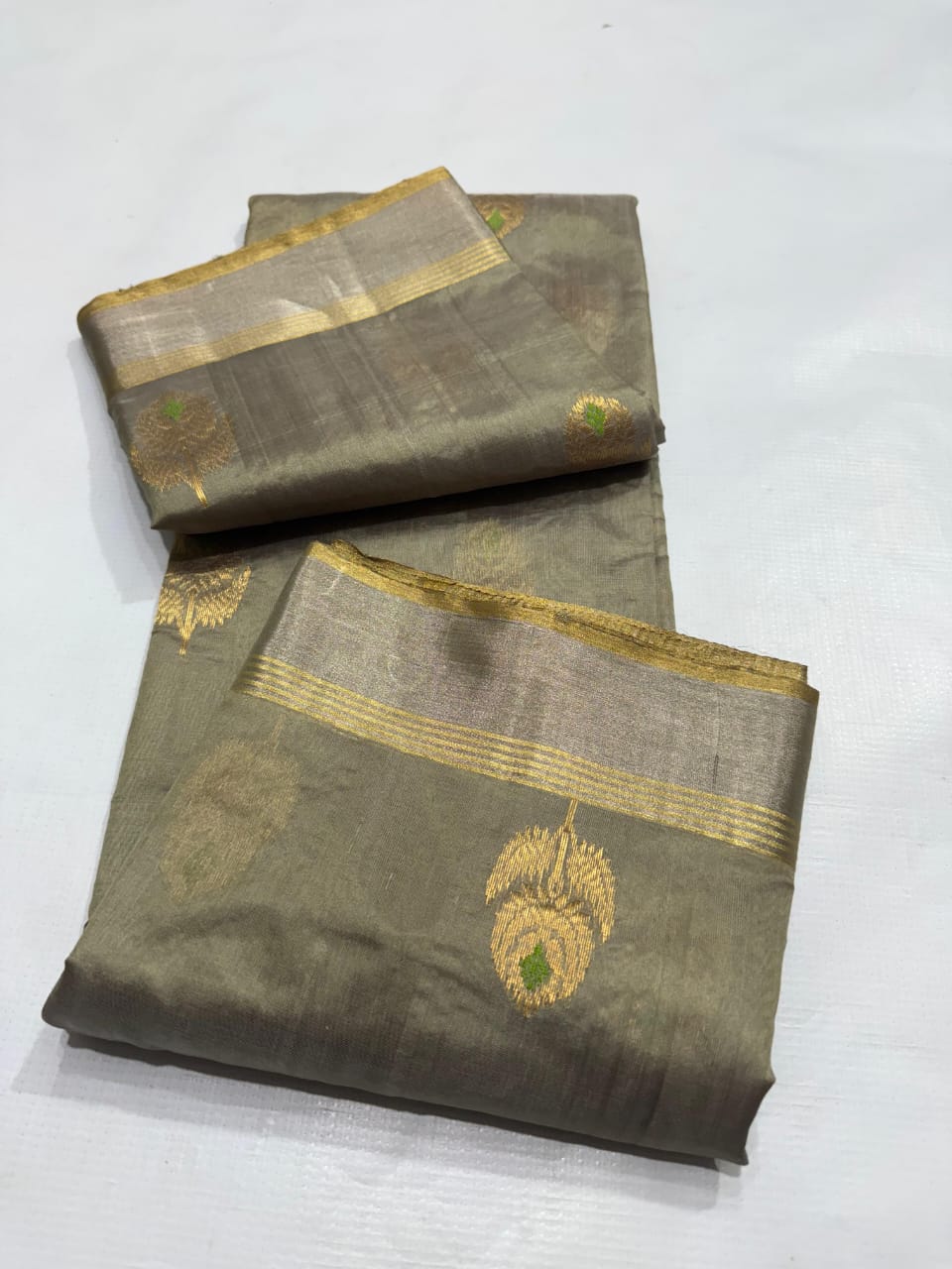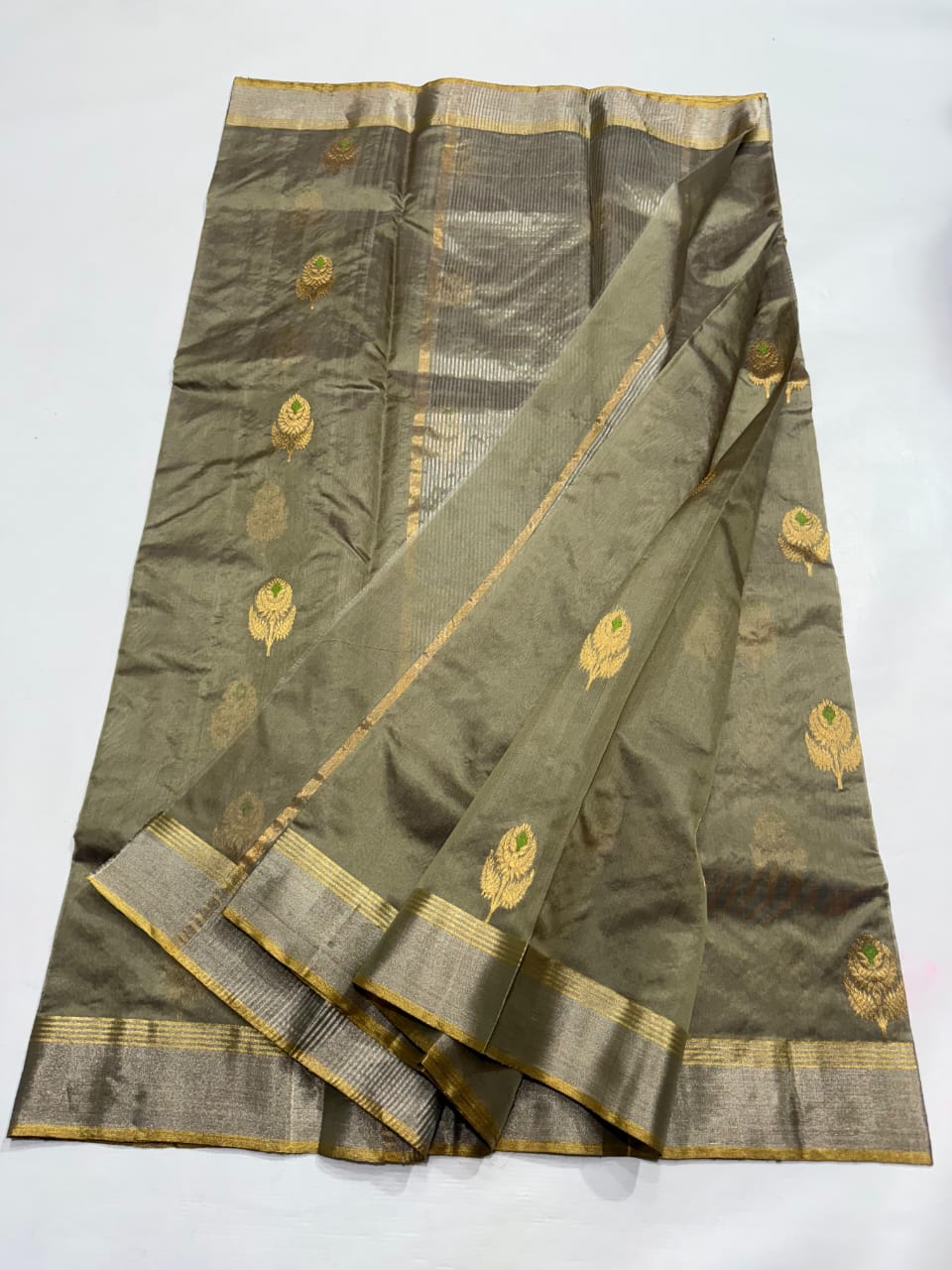 Olive Green Chanderi Handloom Pattu Silk Meenakari Saree
