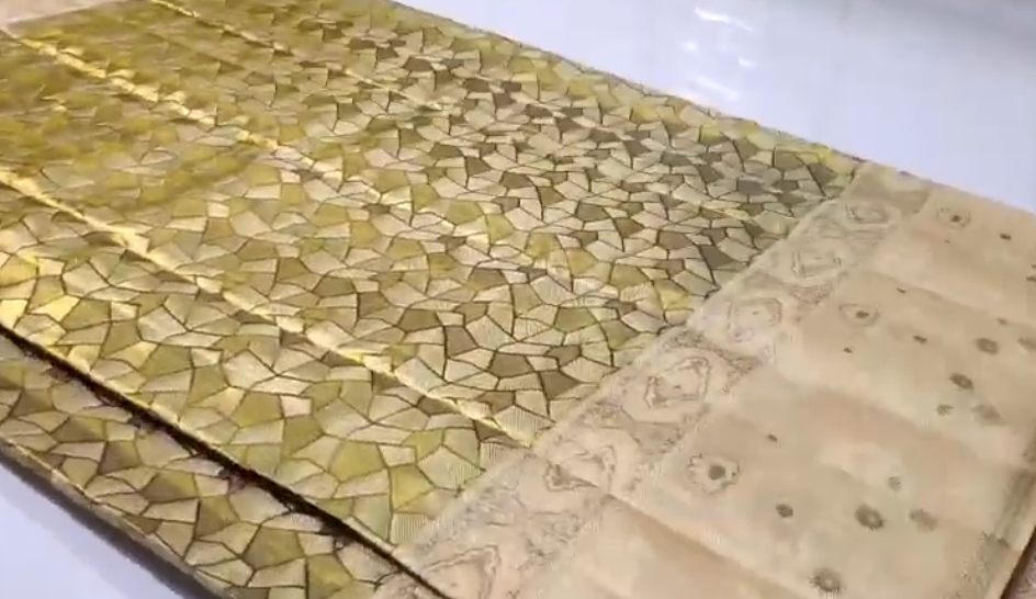 Mustard Kanchipuram Handloom 4D Tissue Brocade Silk Saree