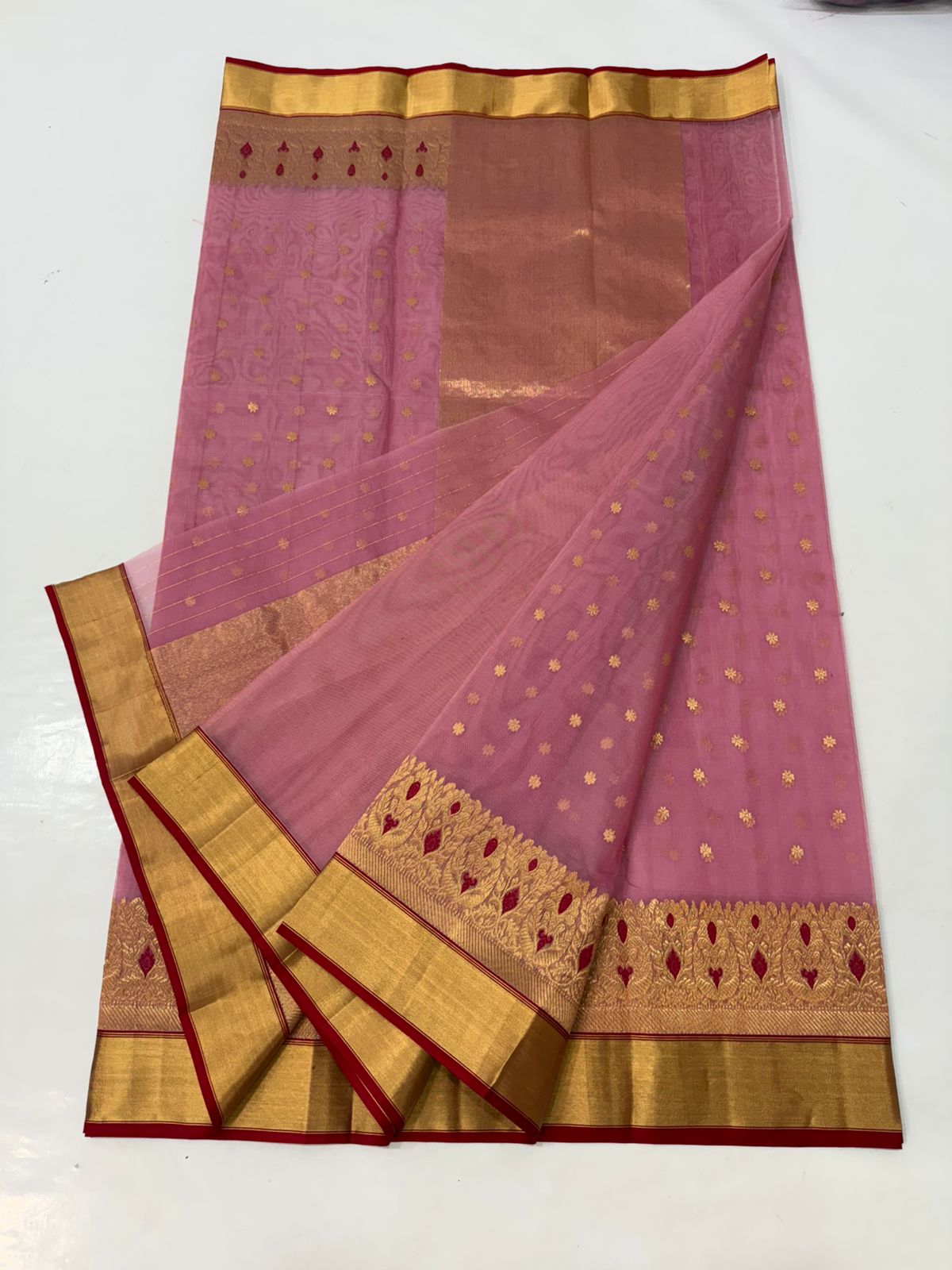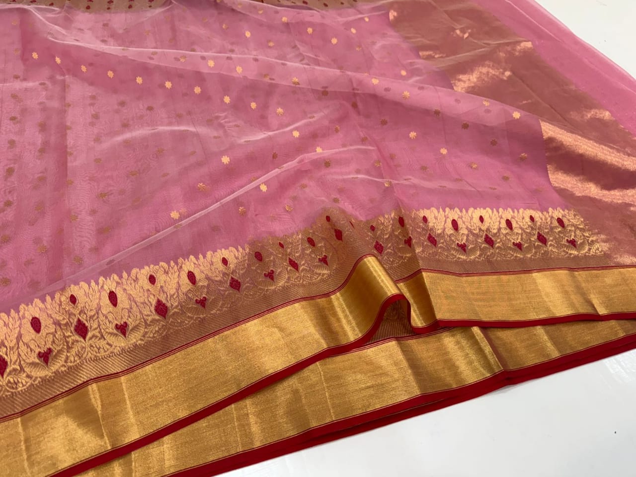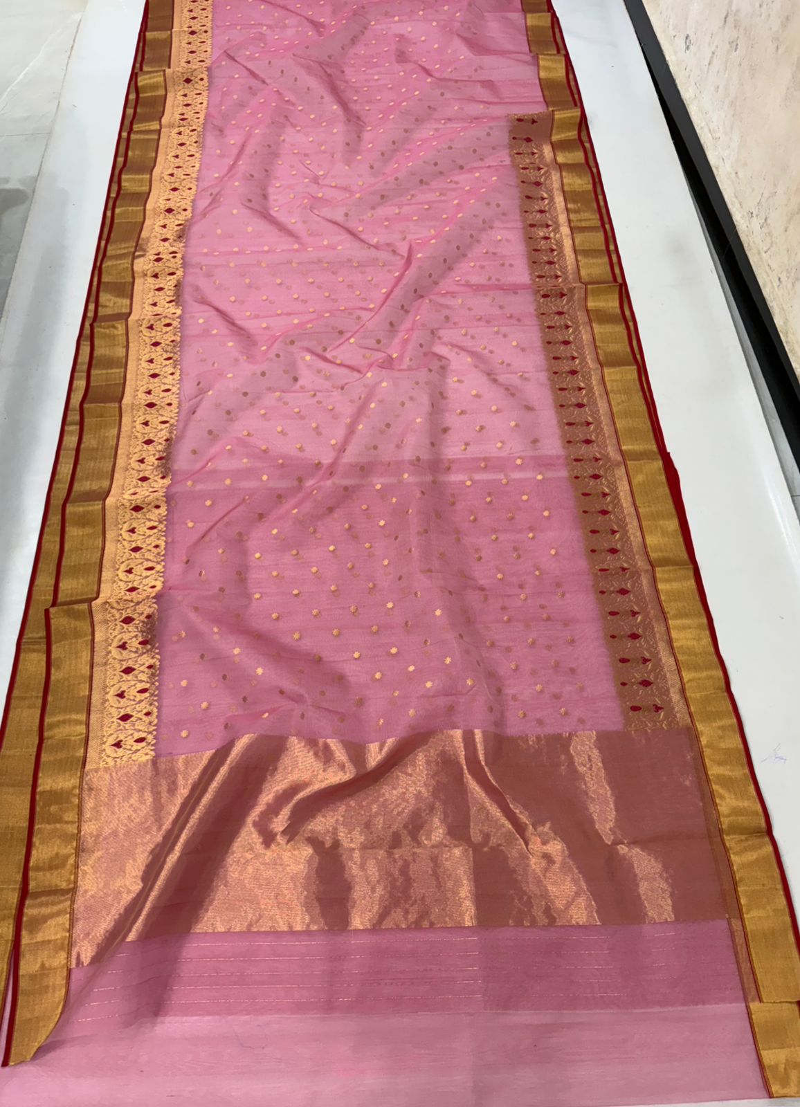 Baby Pink Chanderi Handloom Katan Silk Meenakari Saree