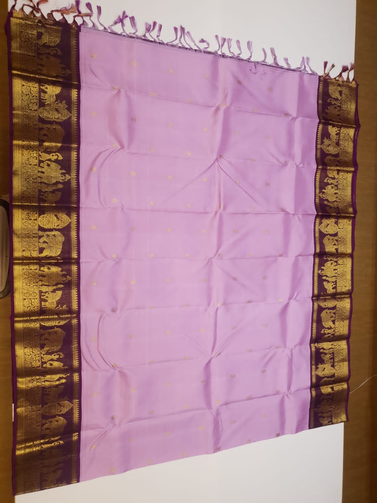 Lavender Kanchipuram Handloom 2G Gold Pattu Silk Saree