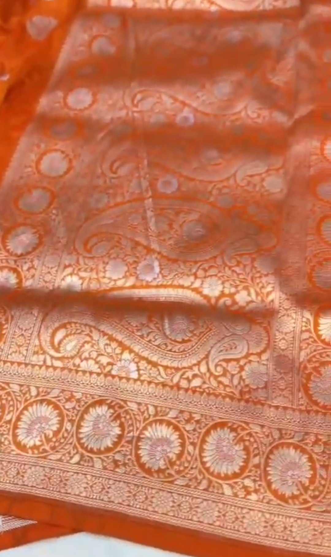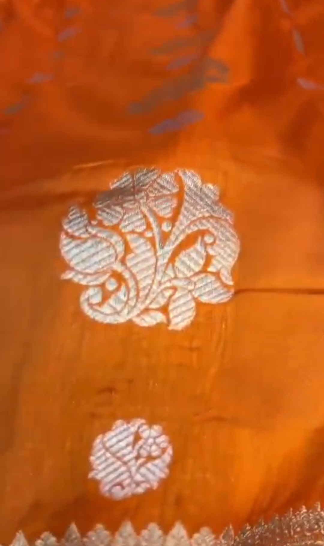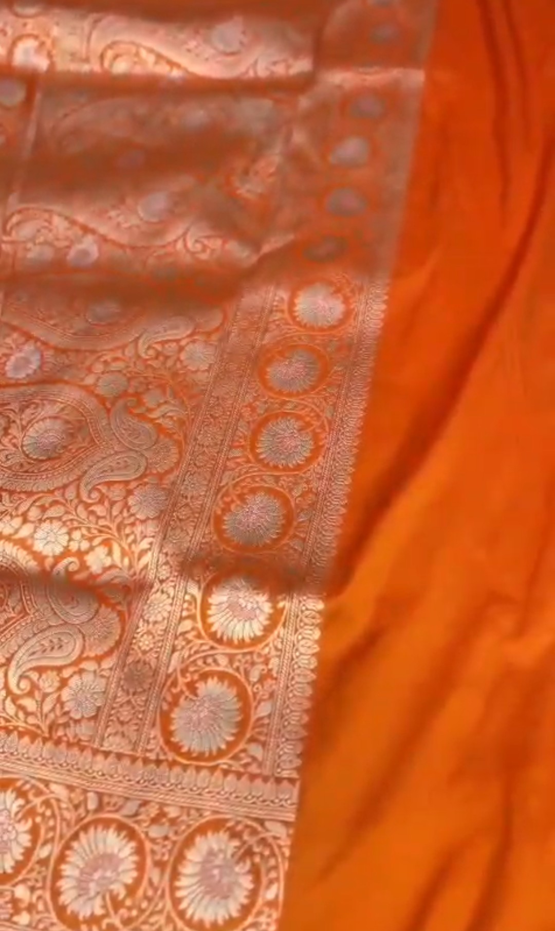 Orange Banarasi Handloom Katan Silk Sona Rupa Saree
