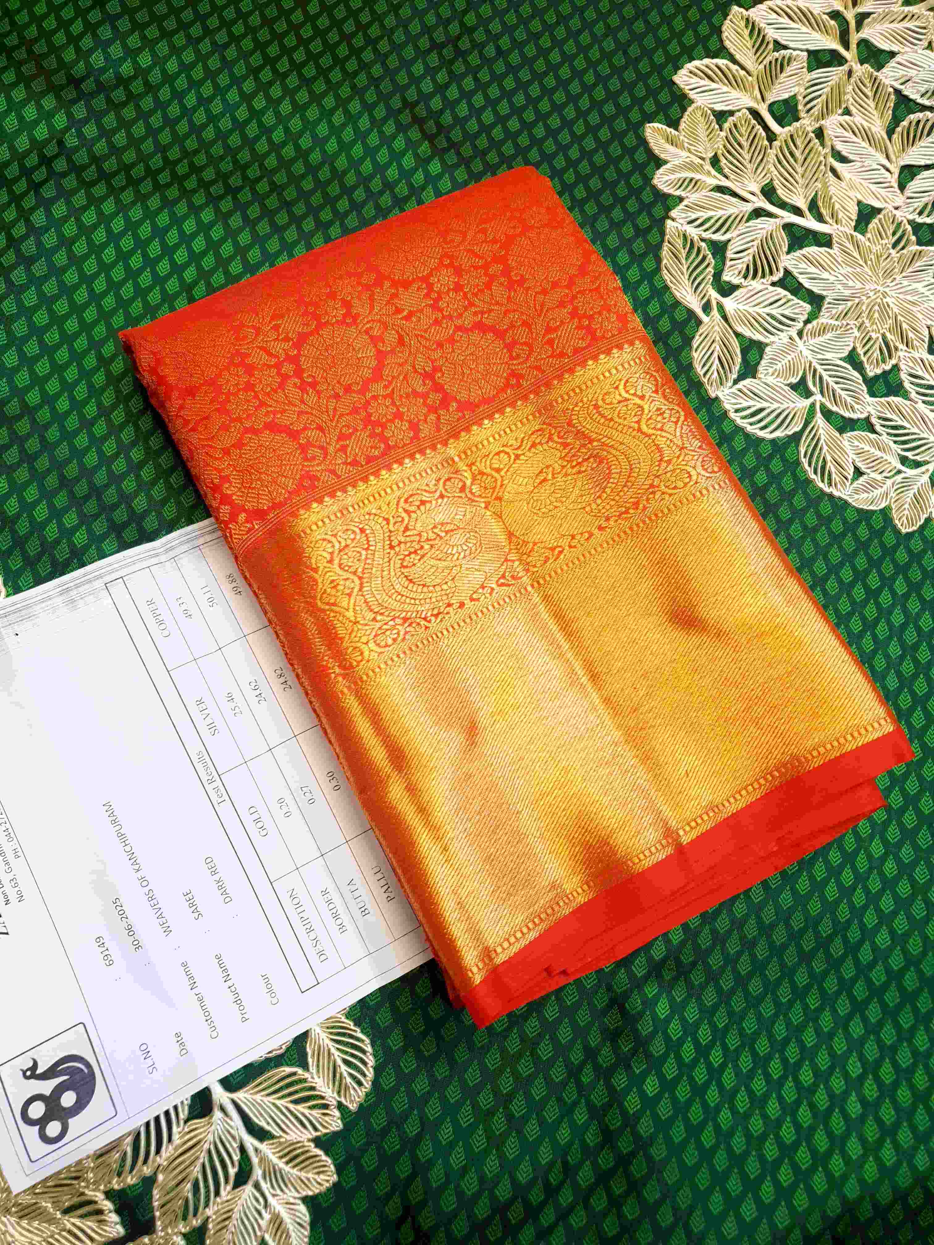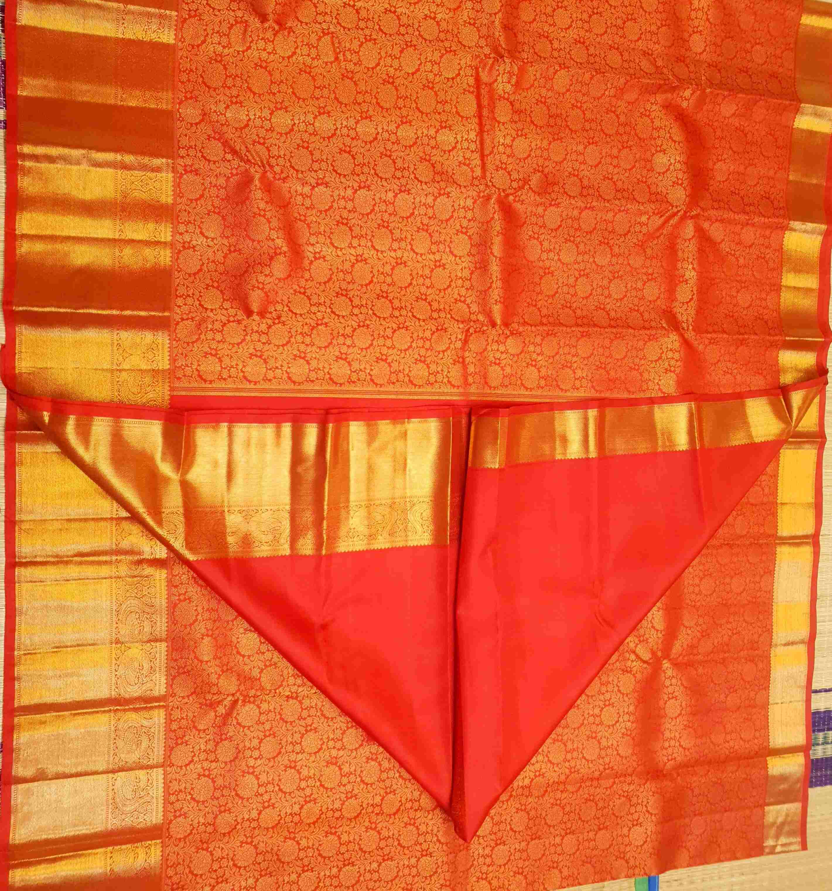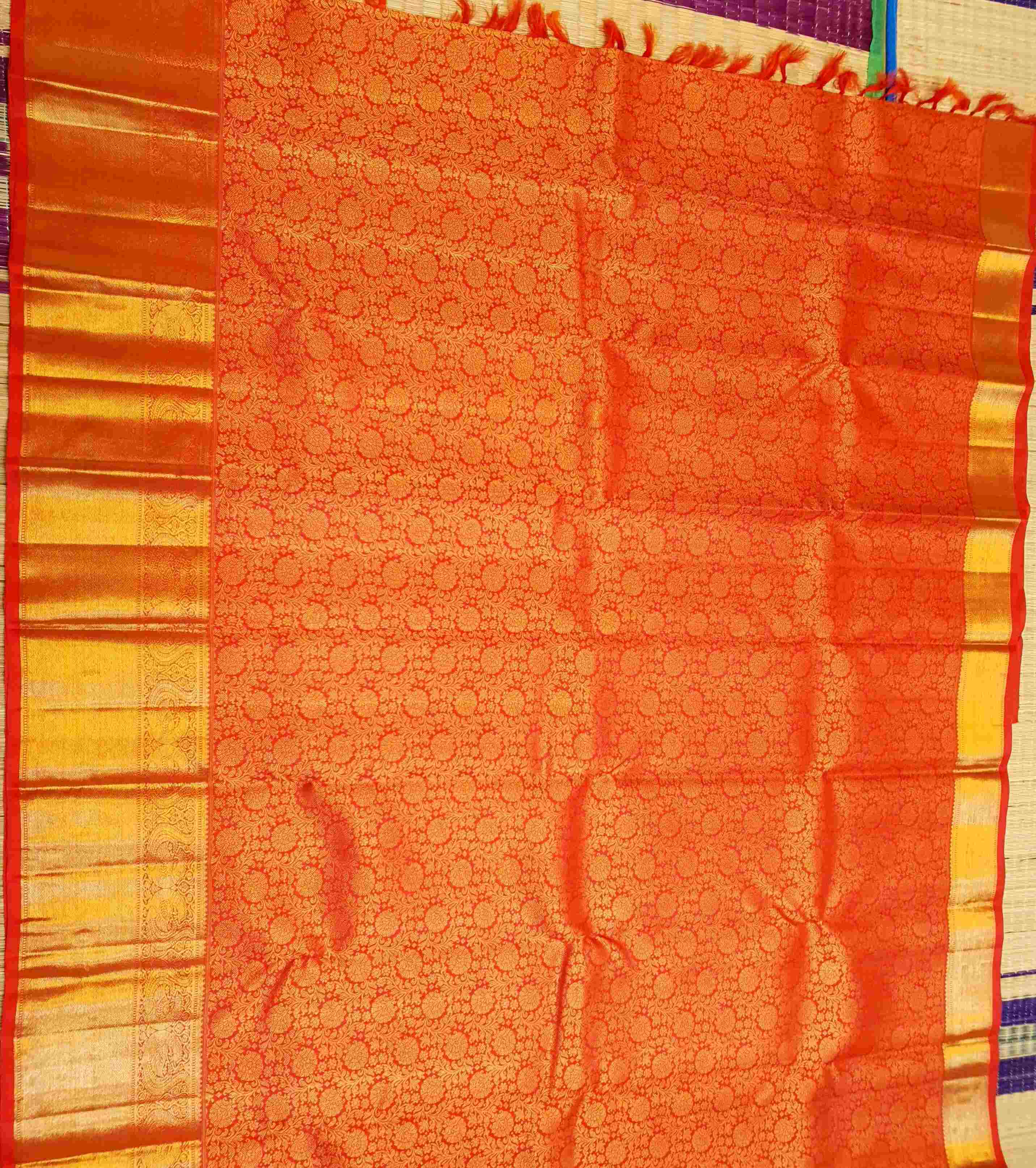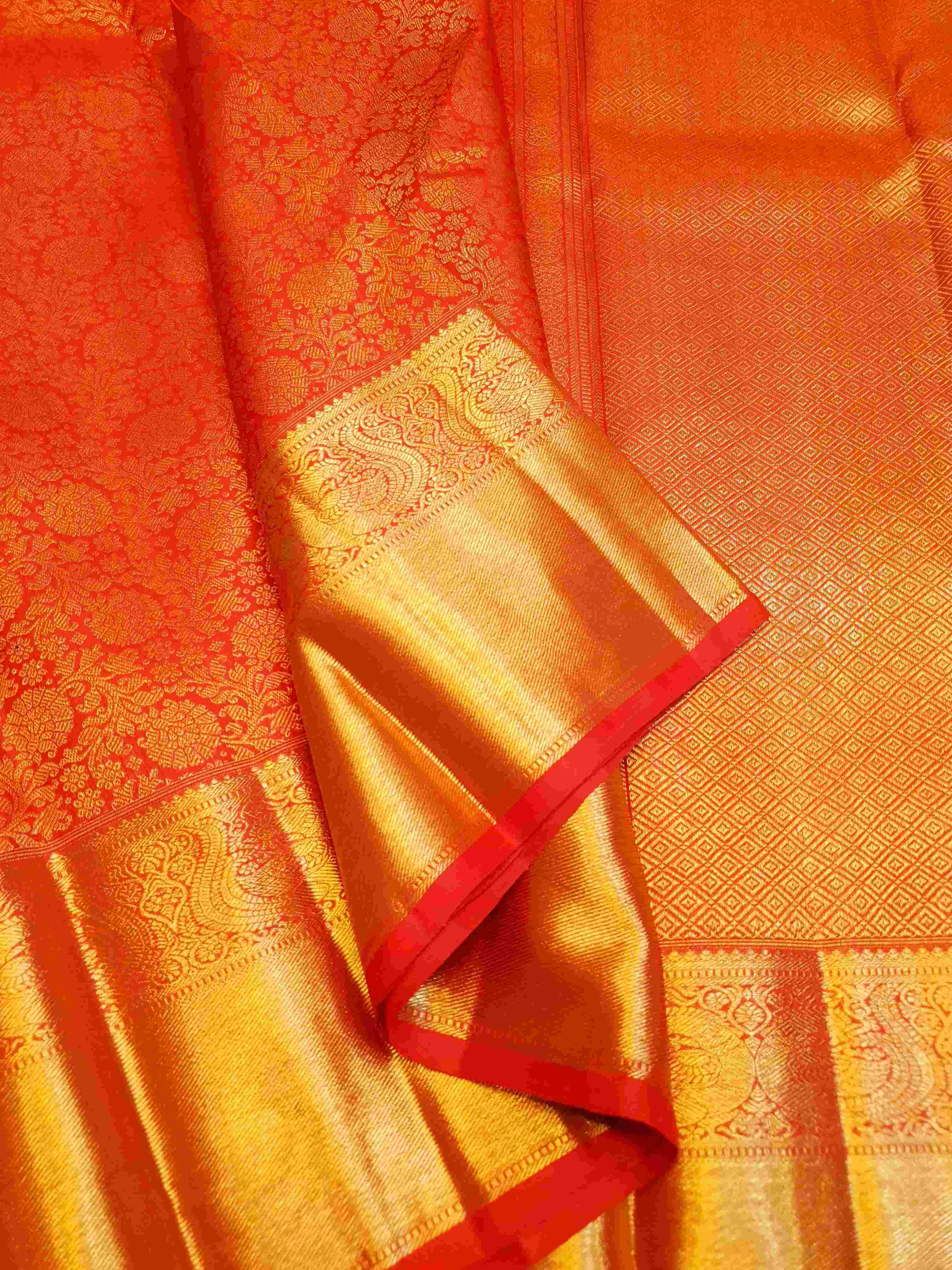 Orange Kanchipuram Handloom 4G Pure Gold Silk Saree