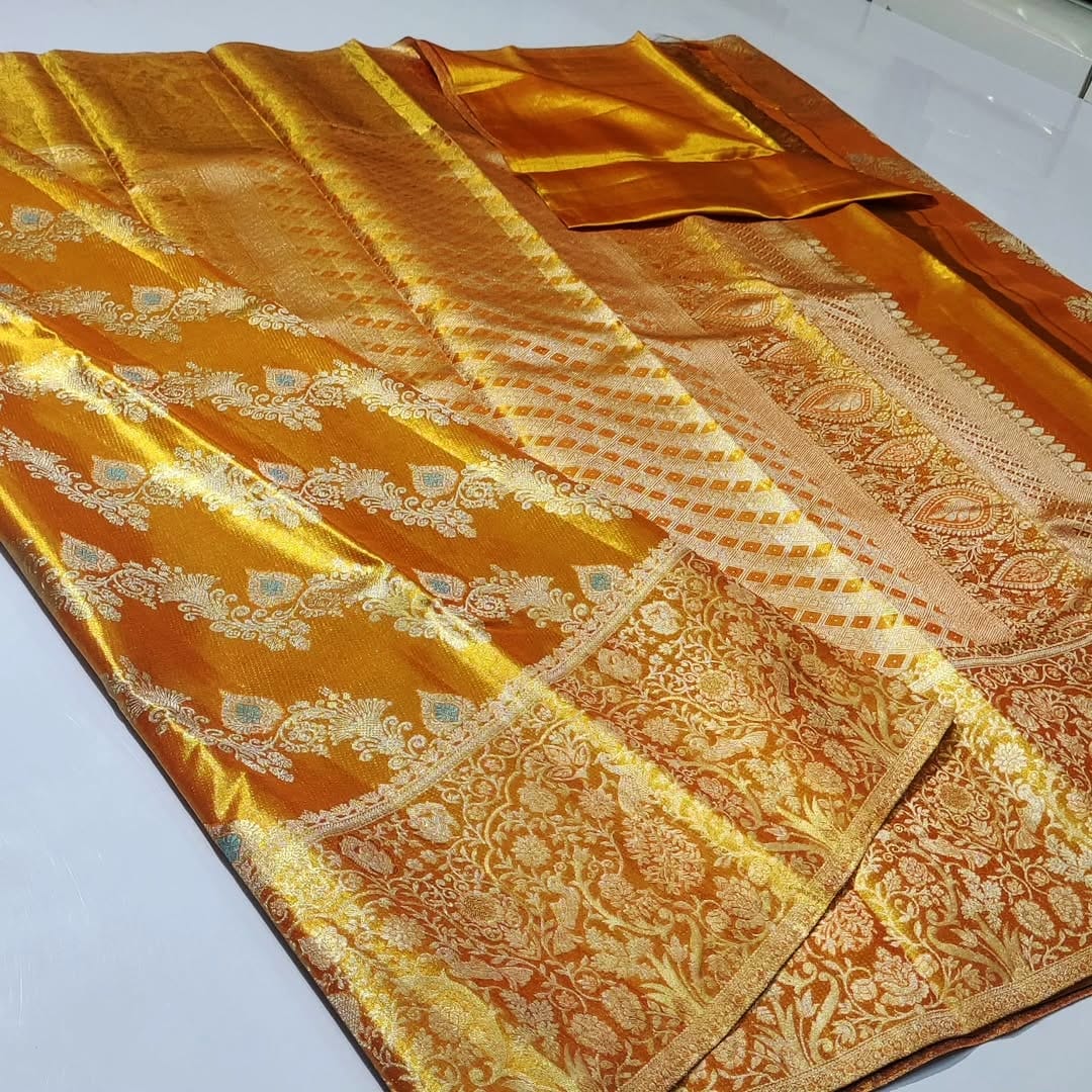 Golden Yellow Kanchipuram Handloom Tissue Brocade 1G Gold Bridal Saree