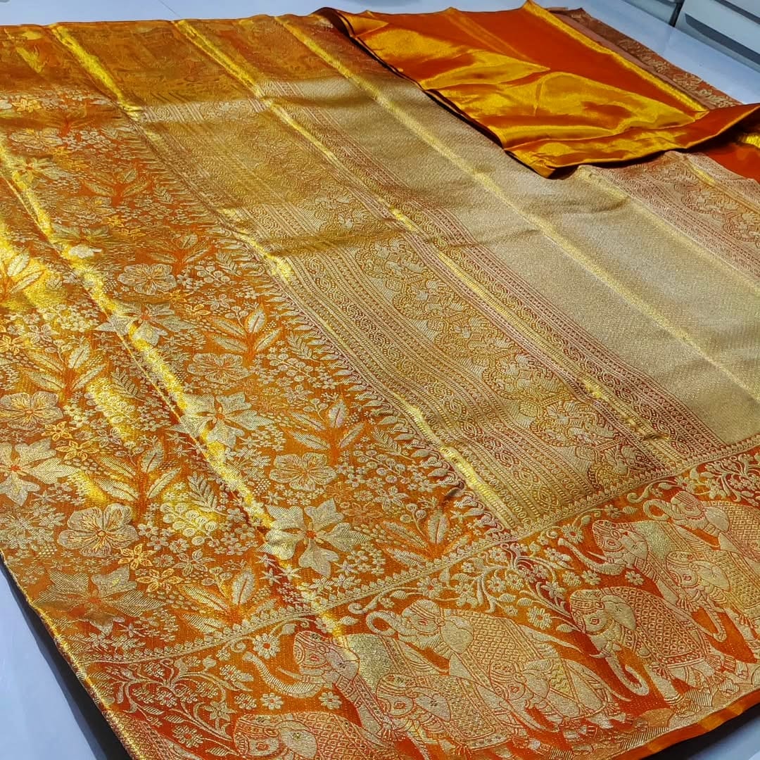 Kanchipattu Handloom Tissue Brocade Silk Saree, Kanjivaram Handloom Tissue Brocade Silk Saree, Kanchipuram Handloom Pure Pattu Silk Saree