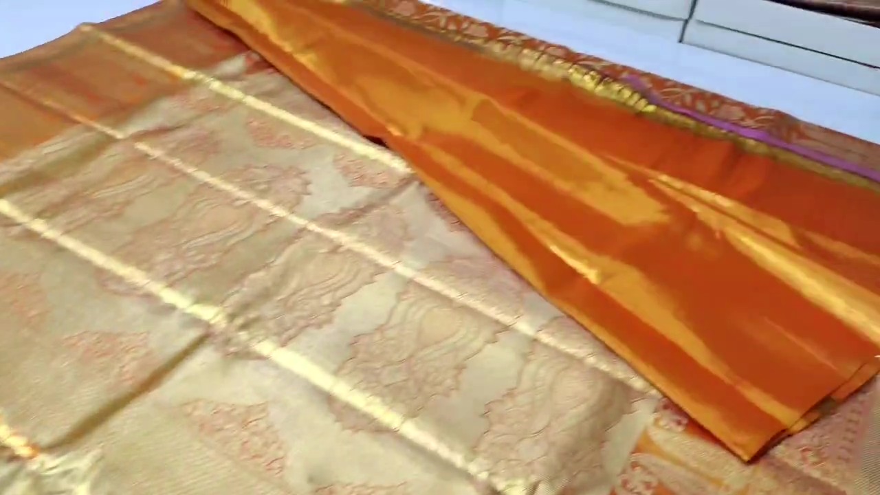Orange Kanchipuram Handloom Tissue Brocade Silk Saree
