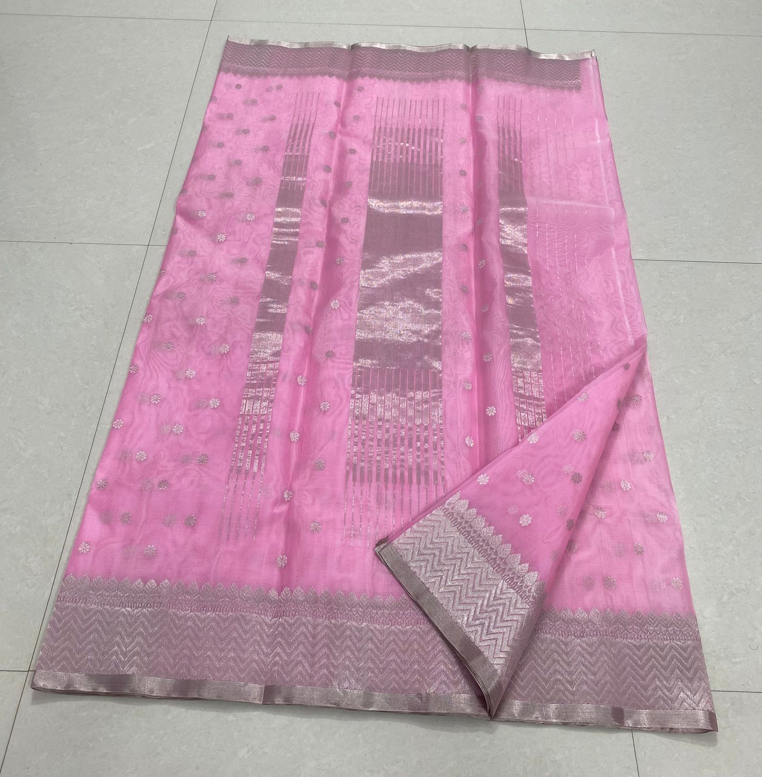 Baby Pink Chanderi Handloom Katan Silk Meenakari Saree