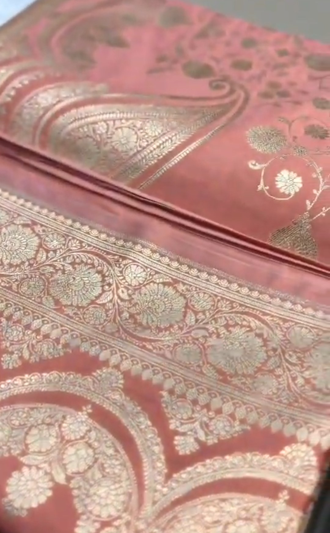 Onion Pink Banarasi Mashru Soft Silk Jangla Saree