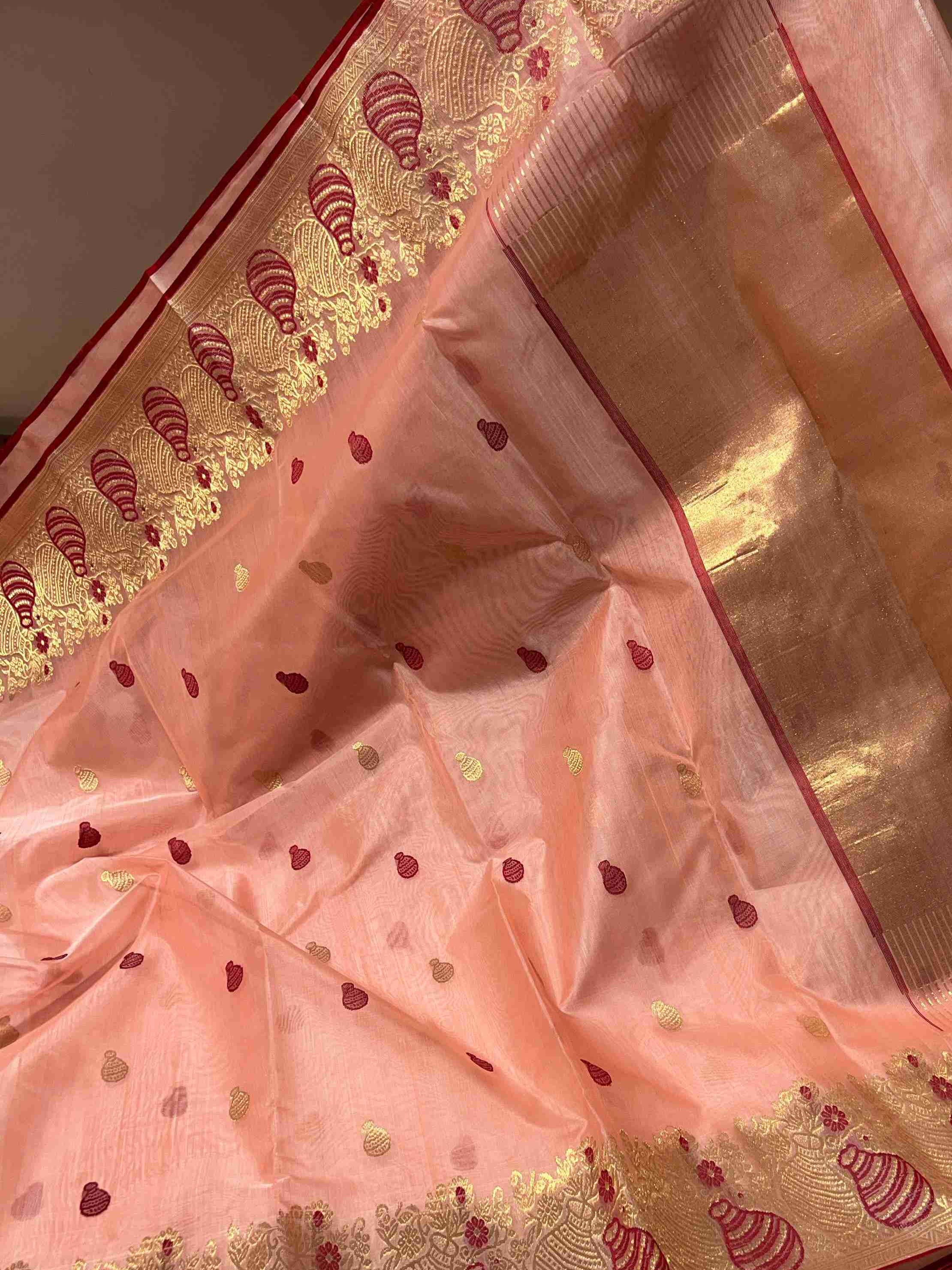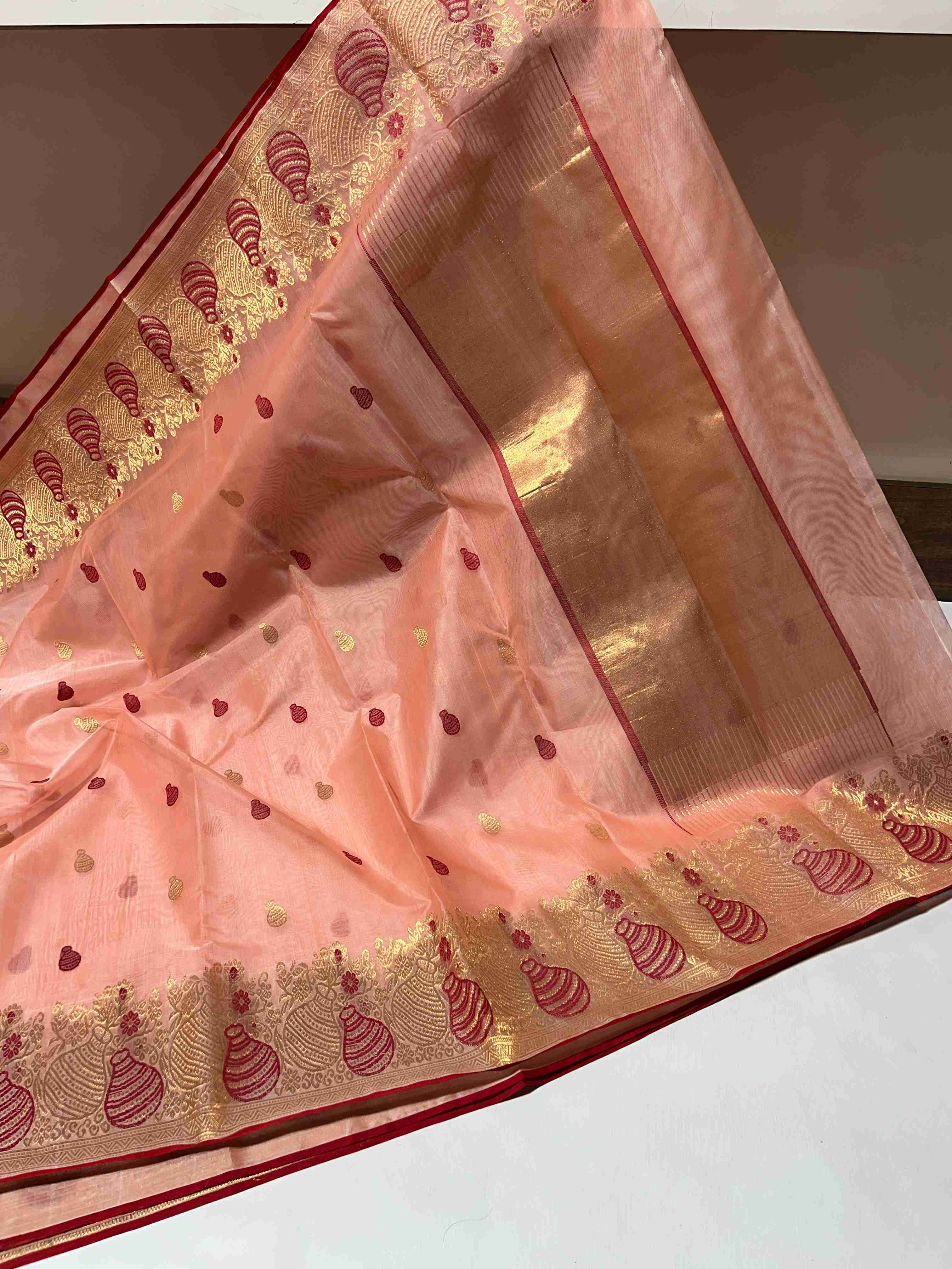 Peach Chanderi Handloom Katan Silk Meenakari Saree