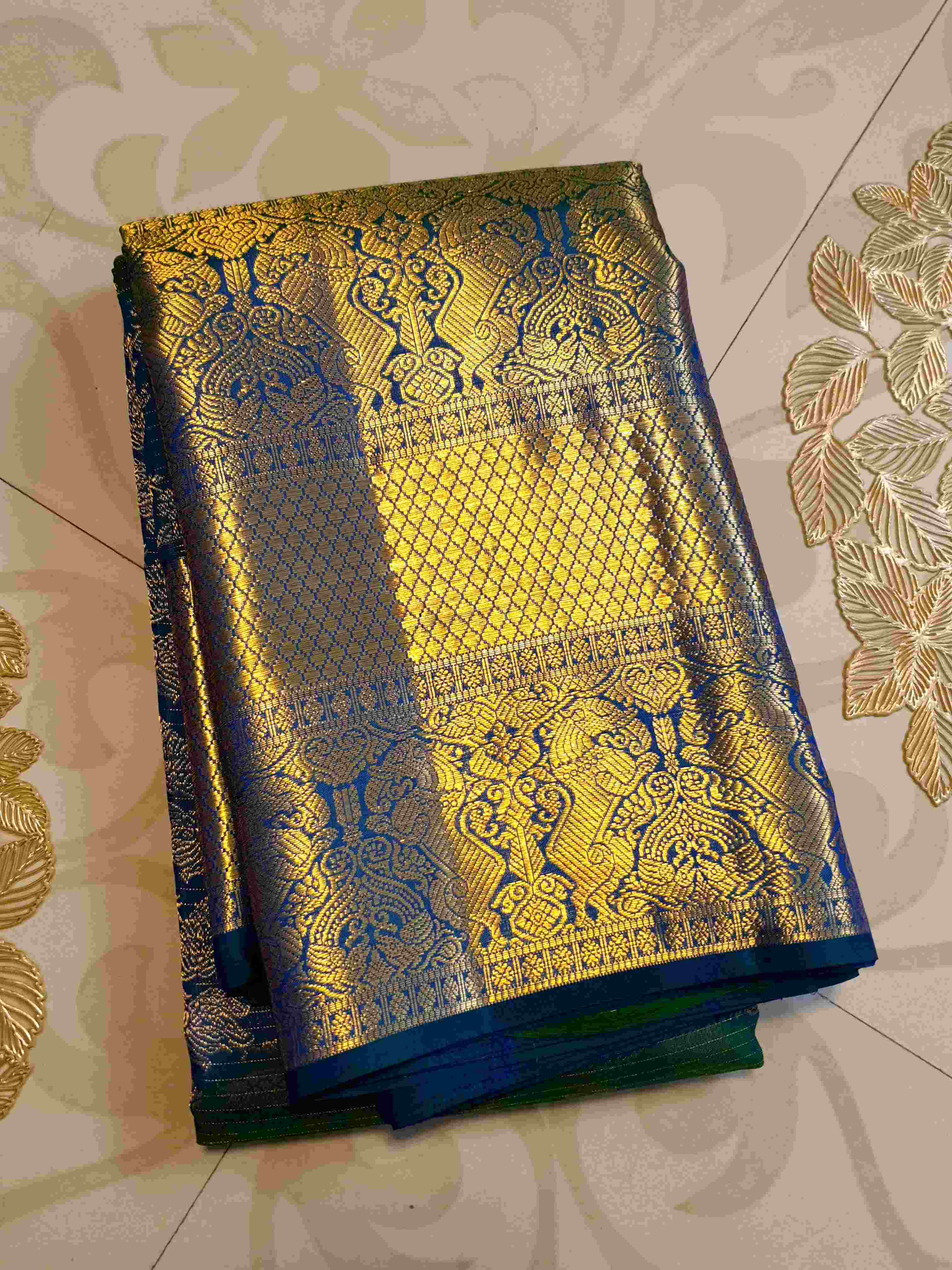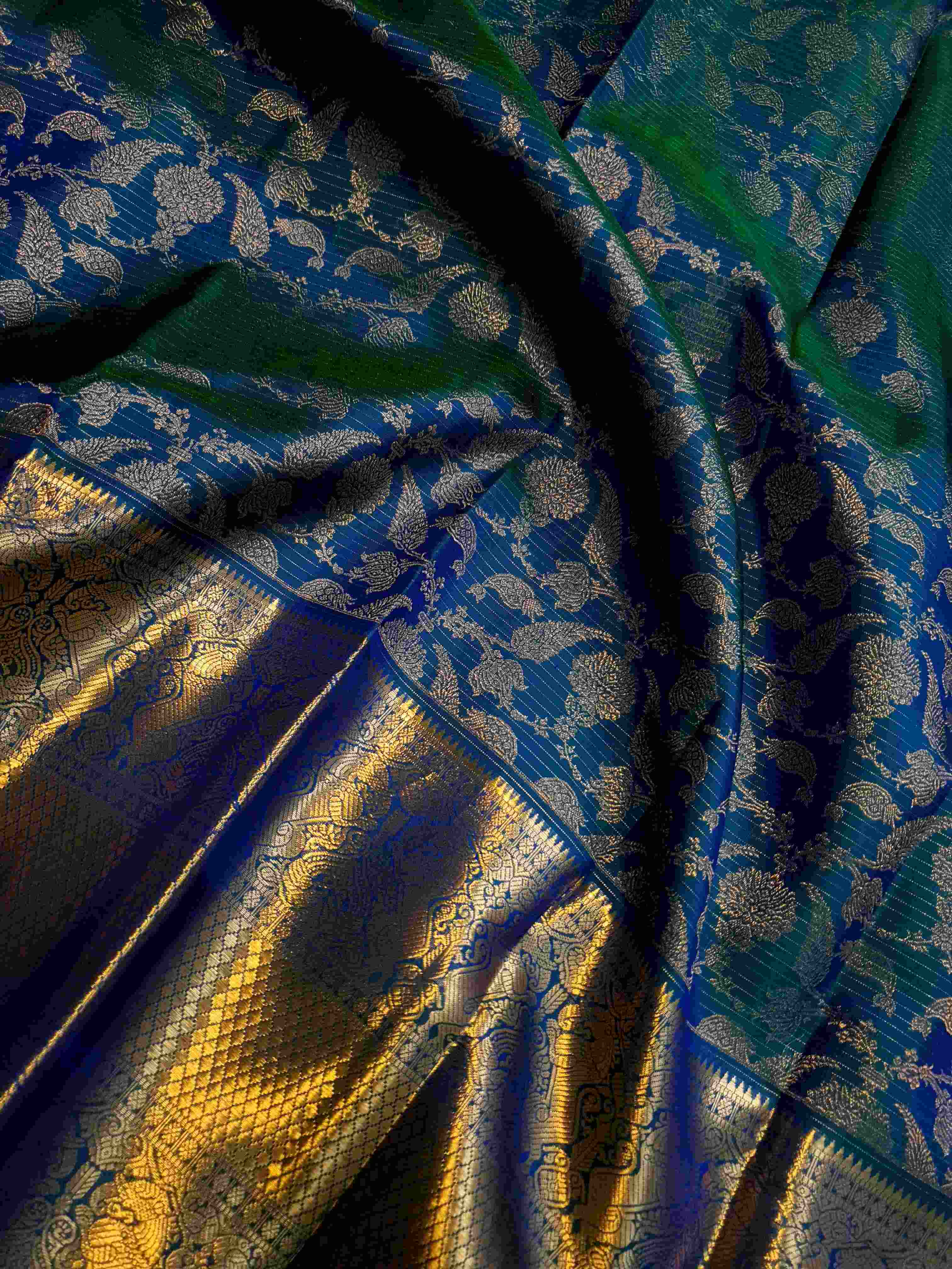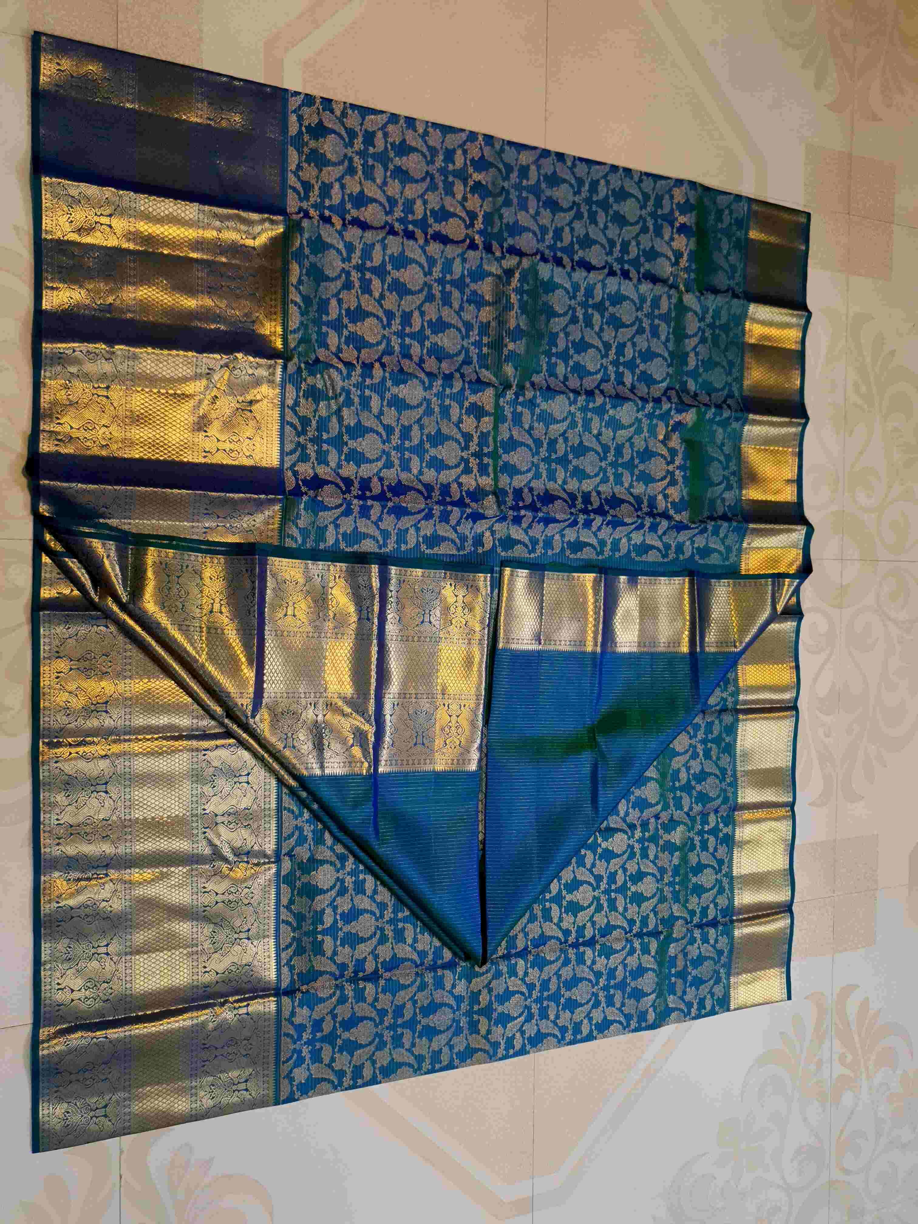 Peacock Blue Kanchipuram Handloom 2G Gold Pattu Silk Saree