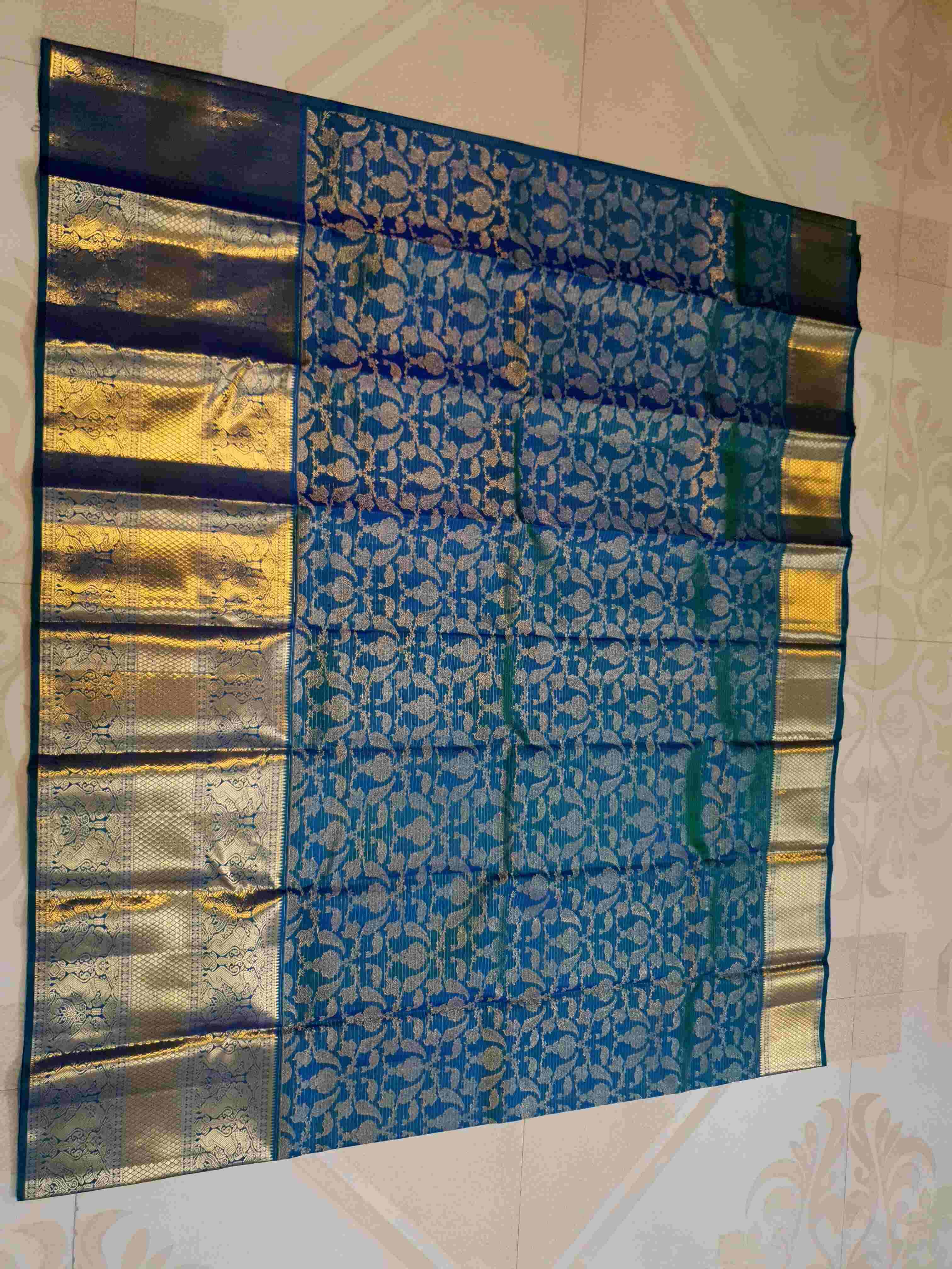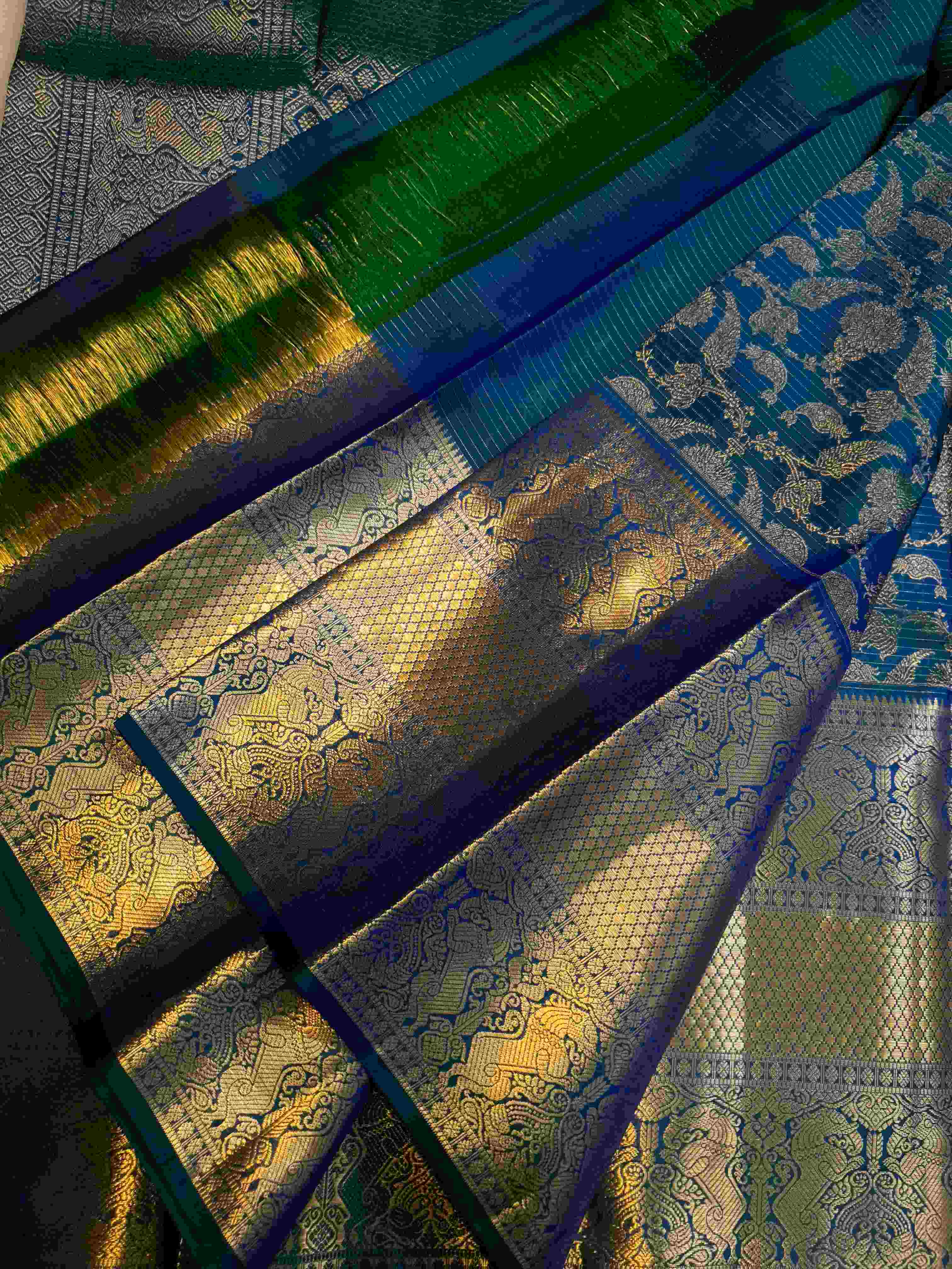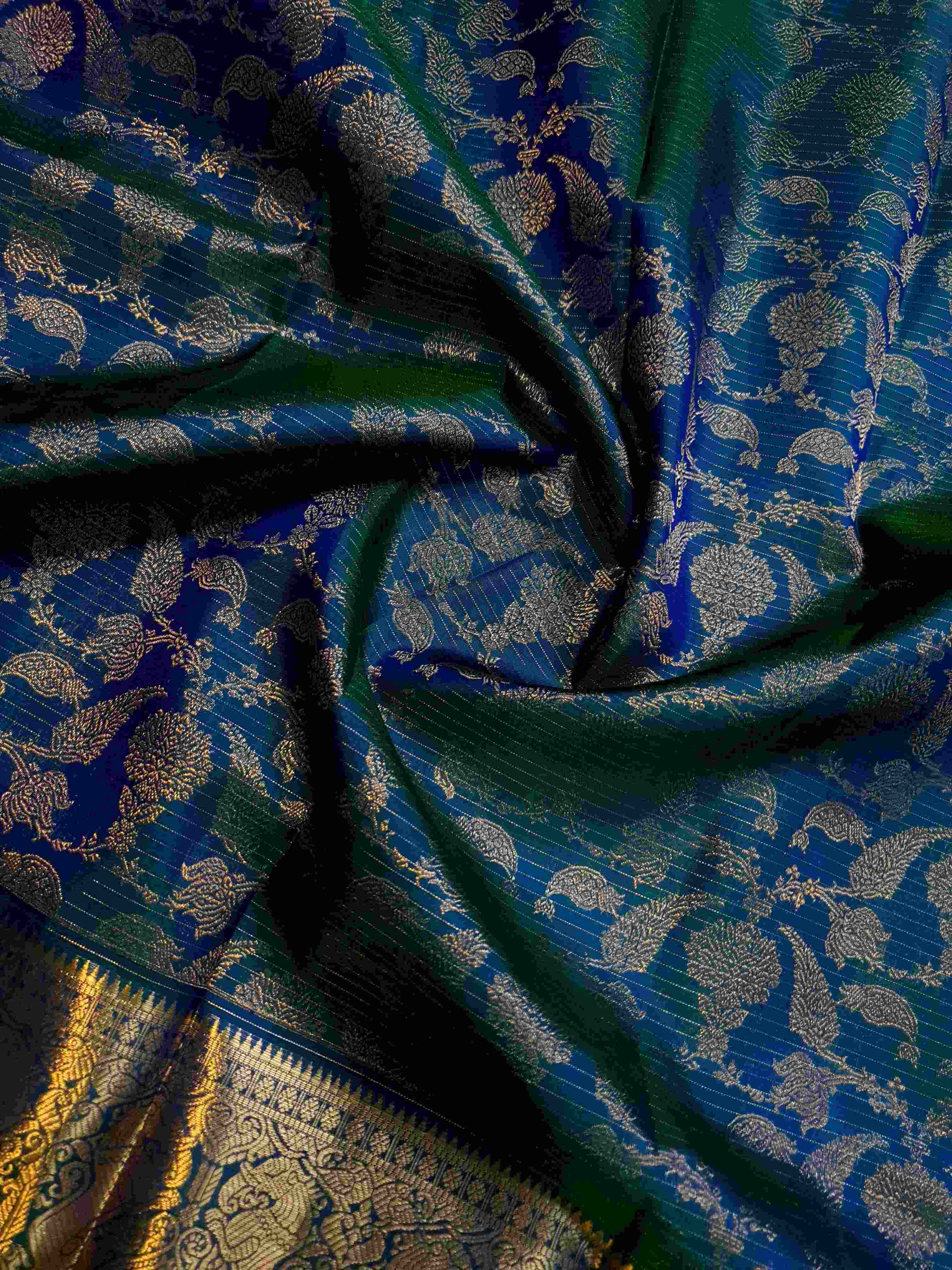 Peacock Blue Kanchipuram Handloom 2G Gold Pattu Silk Saree