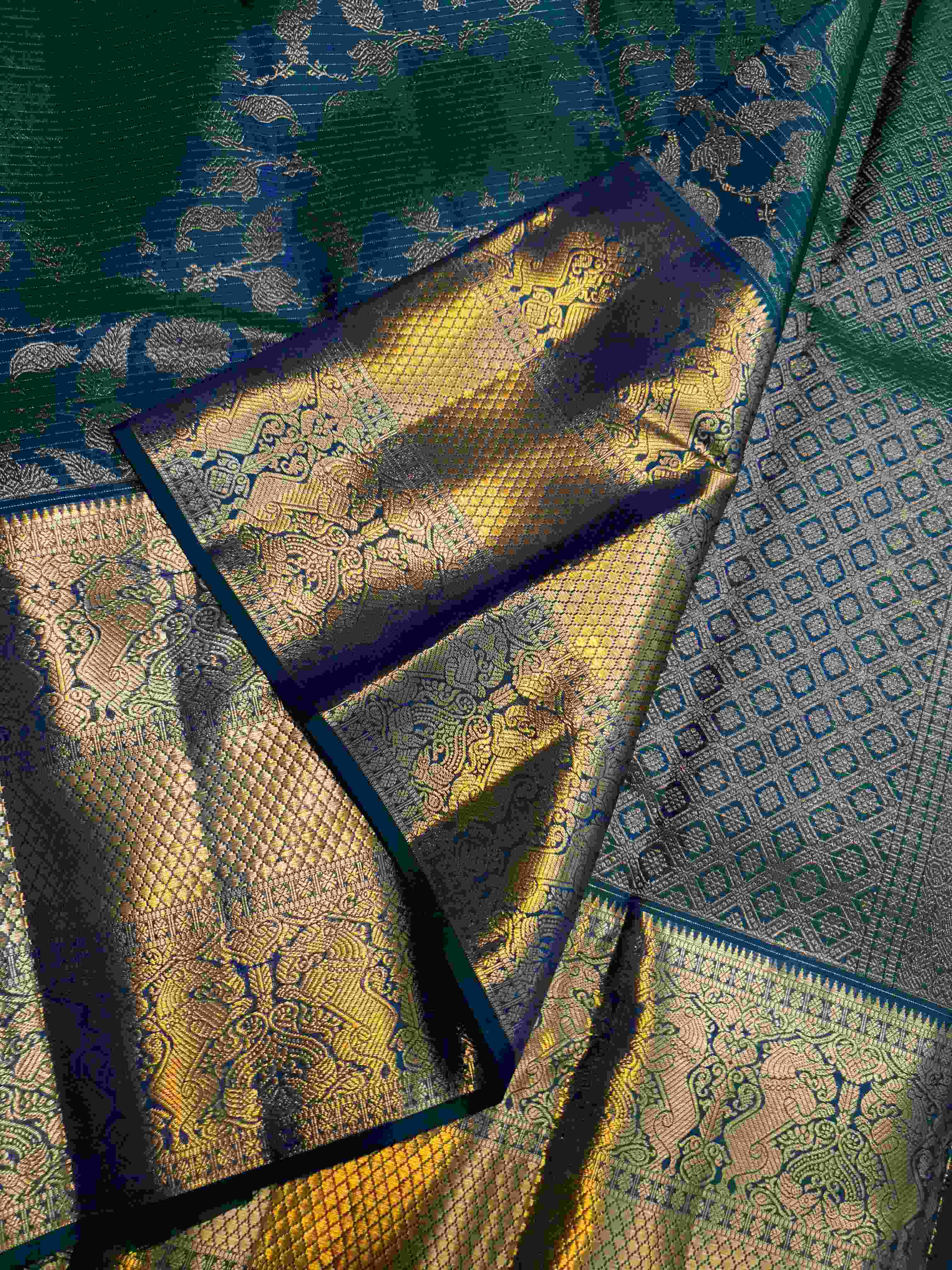 Bottle Green Kanchipuram Handloom 2G Gold Pattu Silk Saree