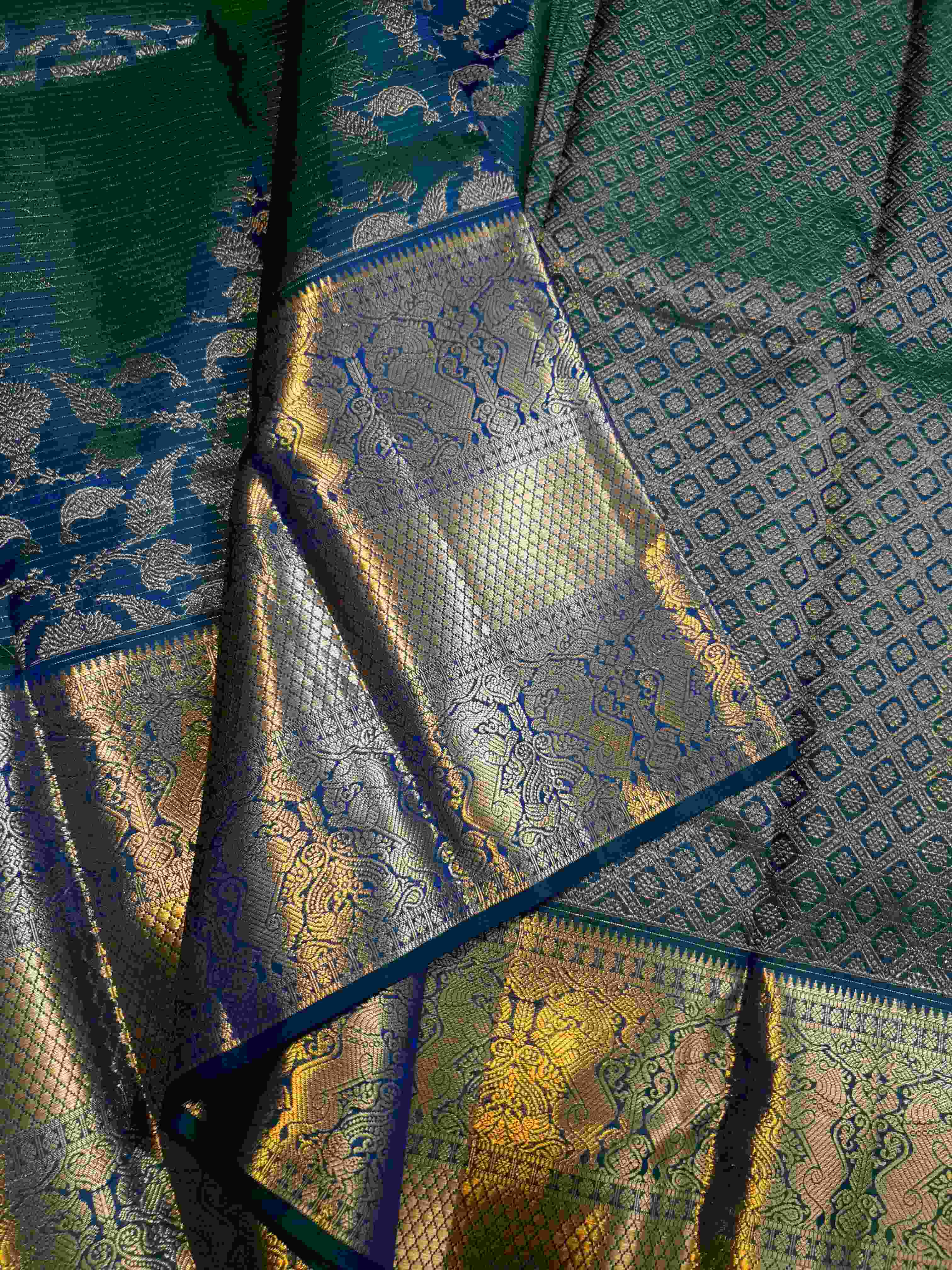 Bottle Green Kanchipuram Handloom 2G Pattu Silk Saree