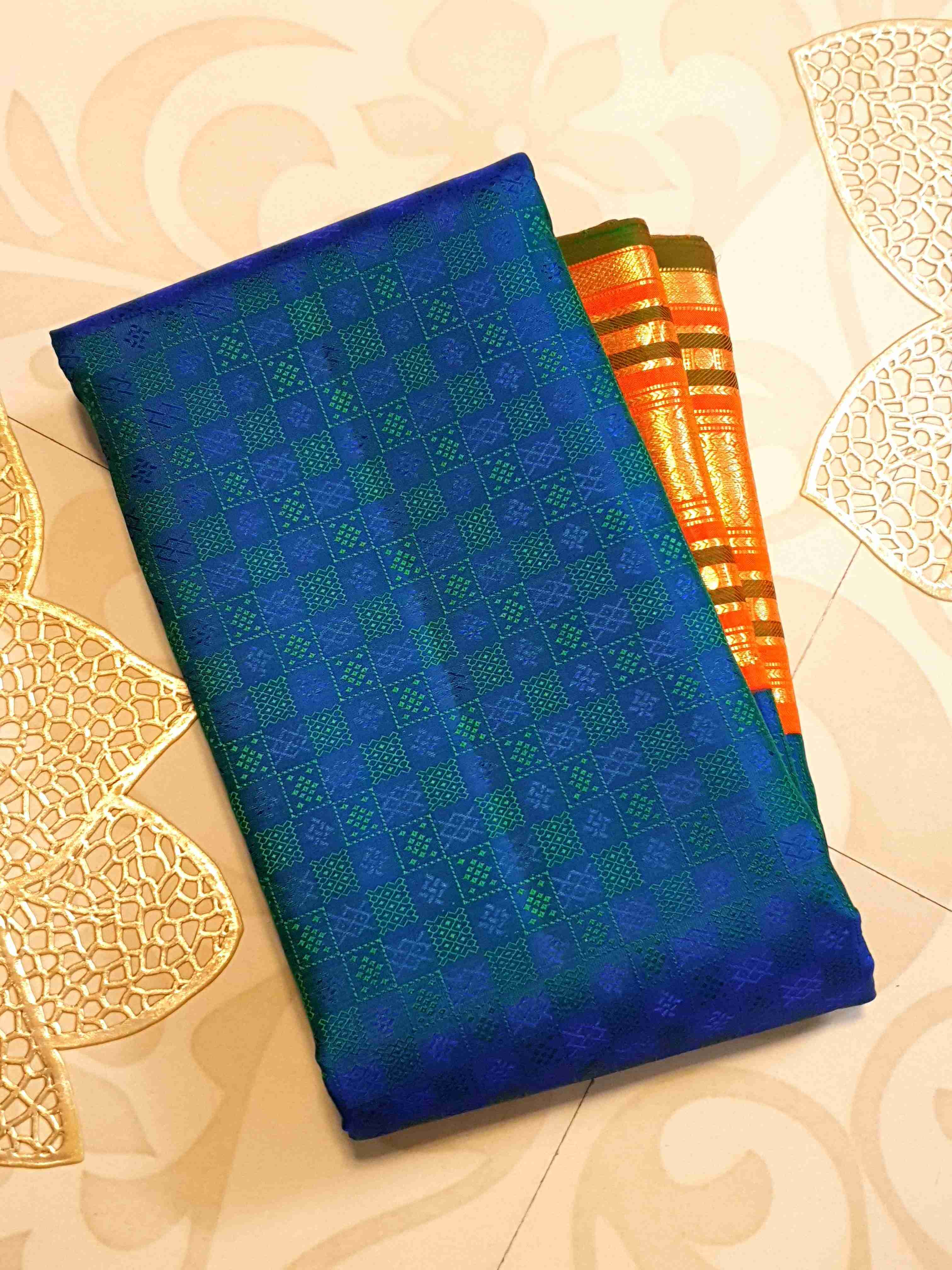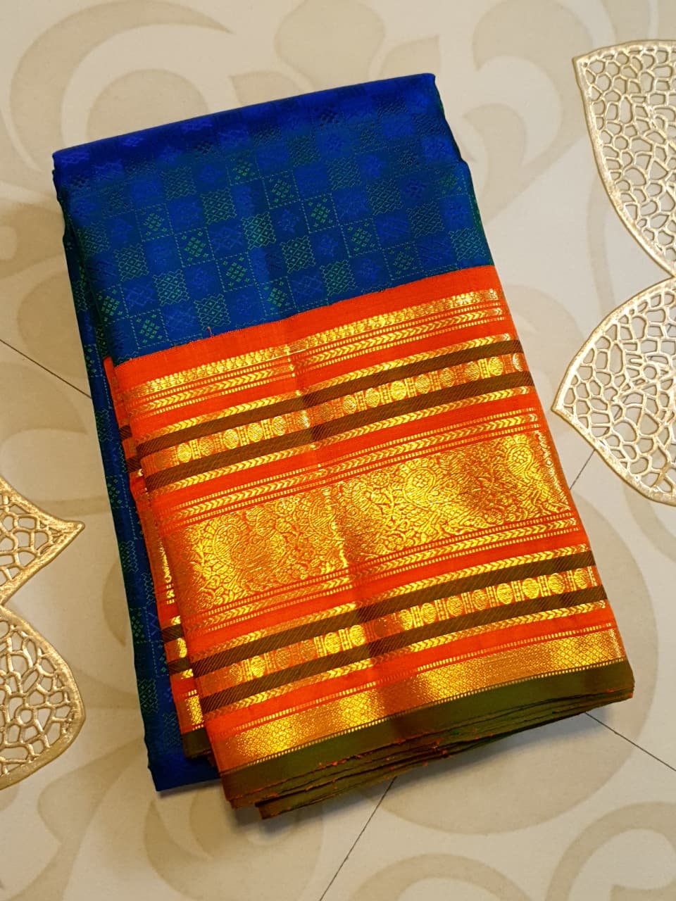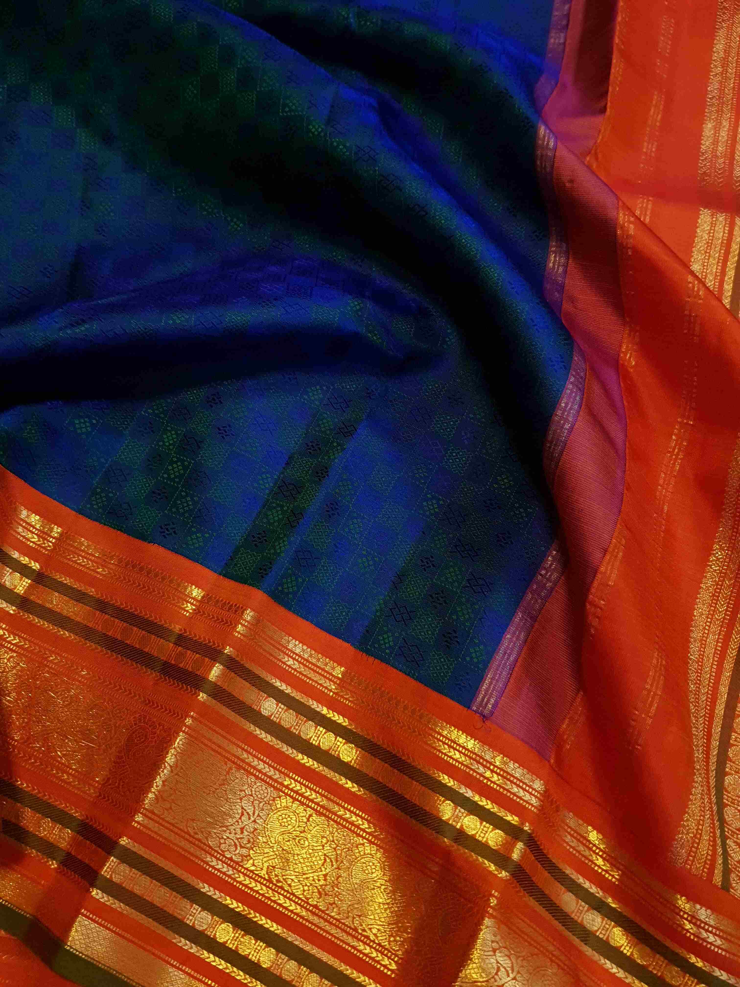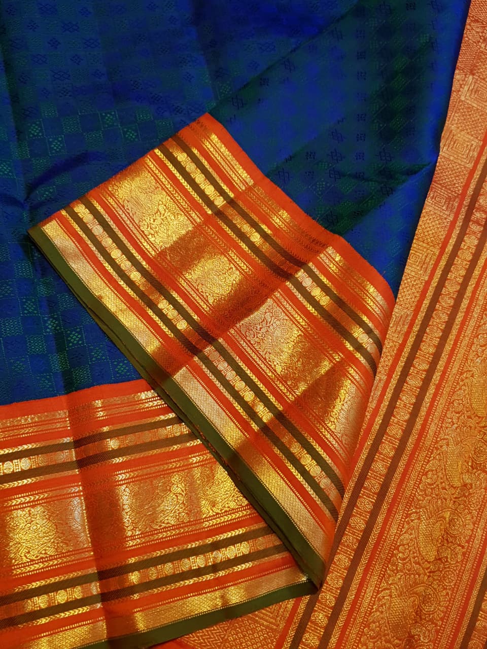 Indigo Kanchipuram Handloom 2G Gold Pattu Silk Saree