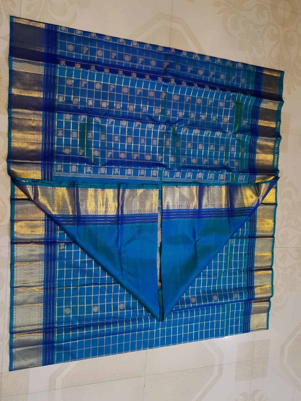 Blue Kanchipuram Handloom 3G Pure Gold Pattu Silk Saree
