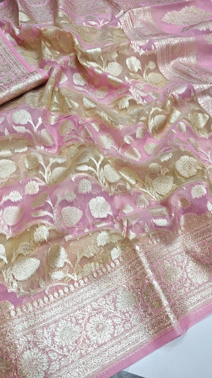 Rose Banarasi Handloom Kora Organza Silk Saree