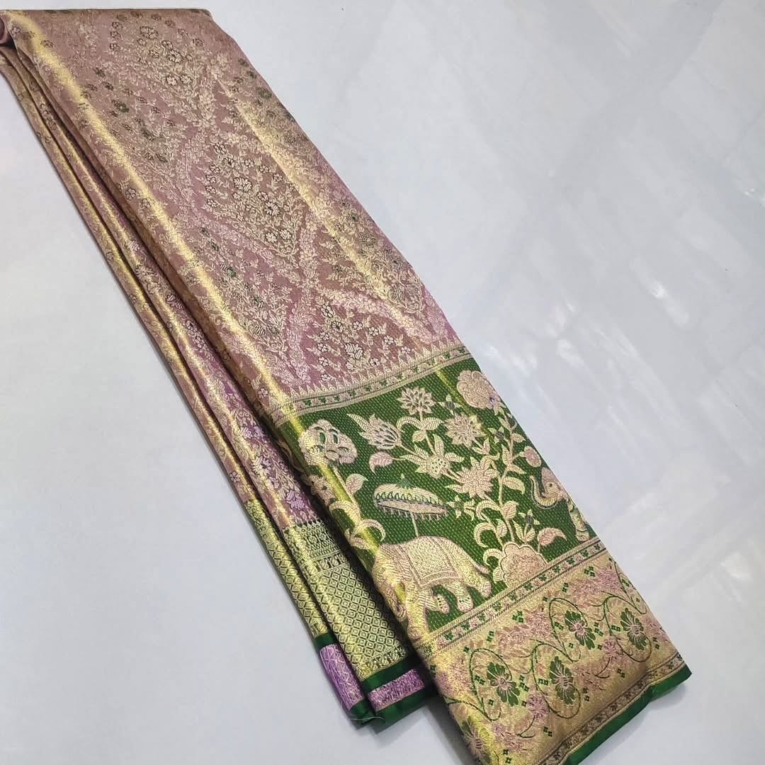 Pink Kanchipuram Handloom Tissue 2G Gold Brocade Silk Saree
