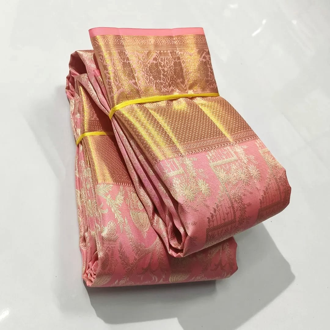 Onion Pink Kanchipuram Handloom Tissue Brocade Silk Saree