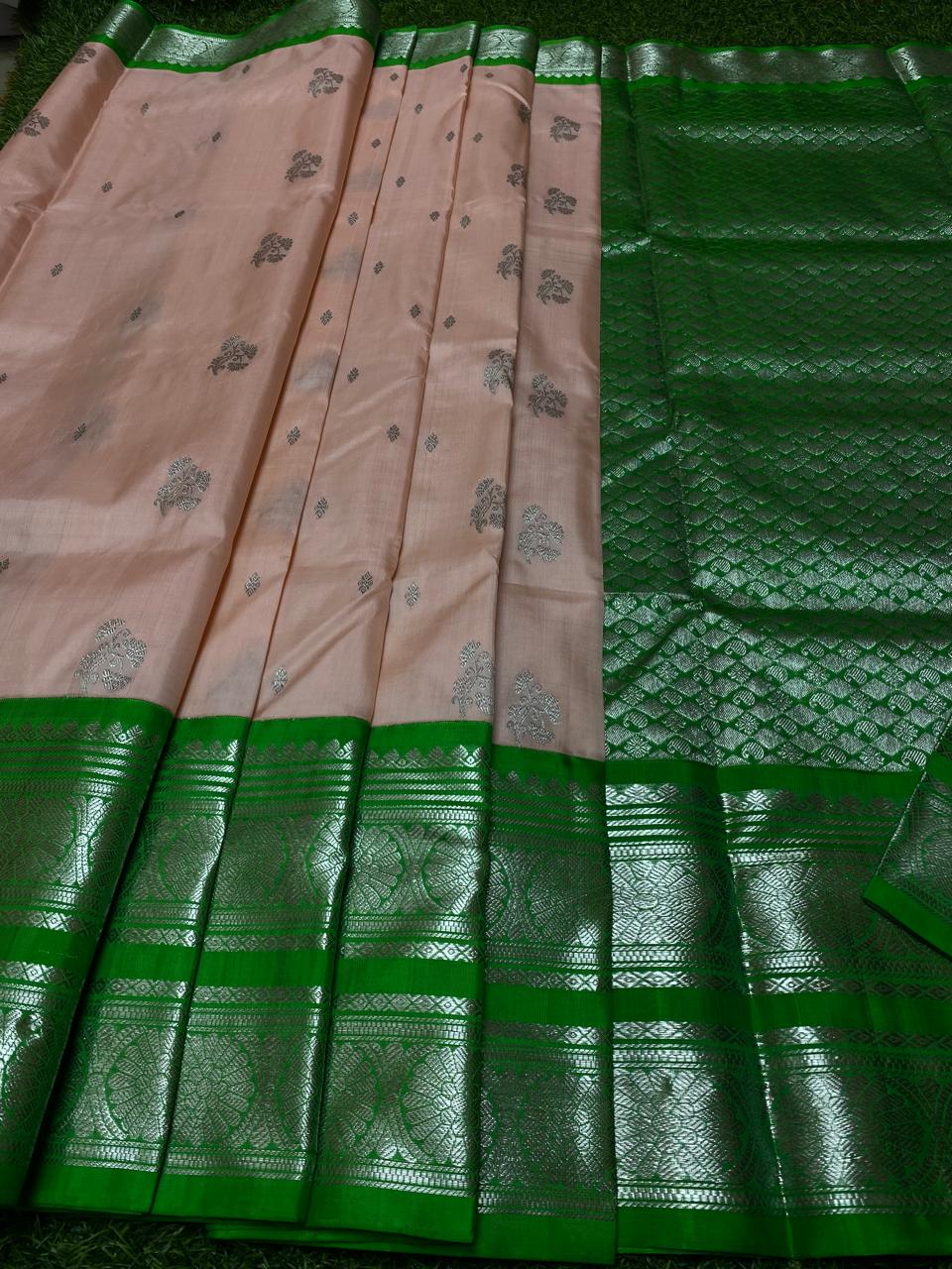 Pinkish Beige Venkatagiri Handloom Pattu Silk Saree