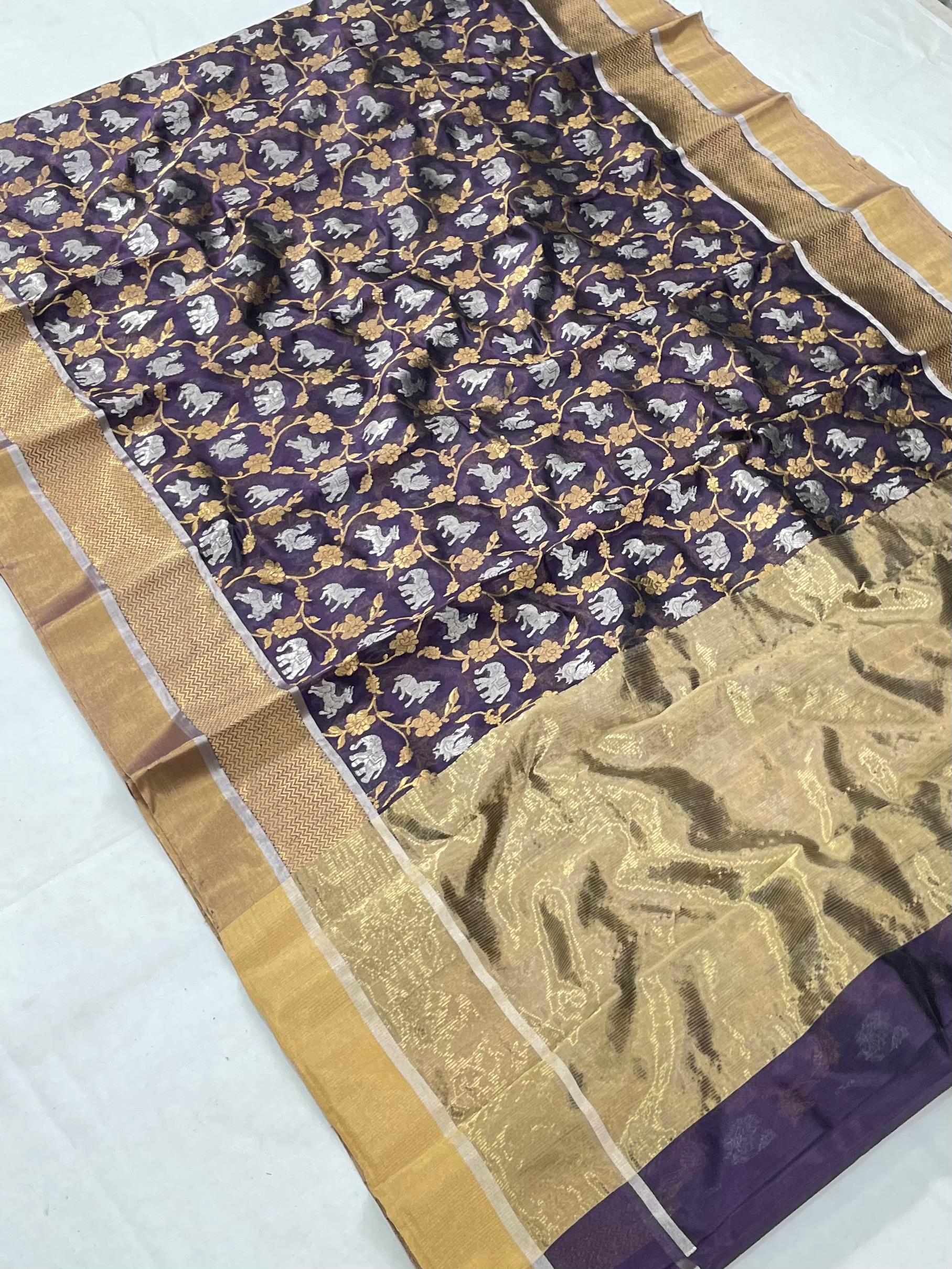 Purple Chanderi Handloom Pattu Silk Meenakari Saree