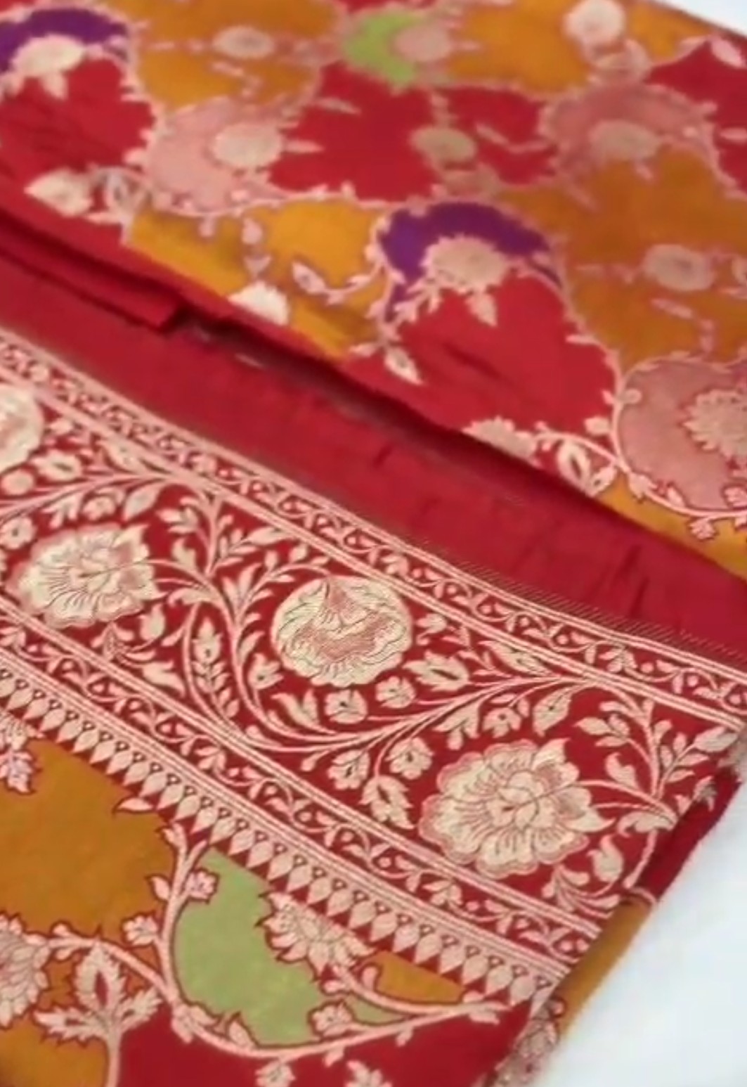 Dual Tone Mustard Banarasi Handloom Katan Silk Meenakari Saree