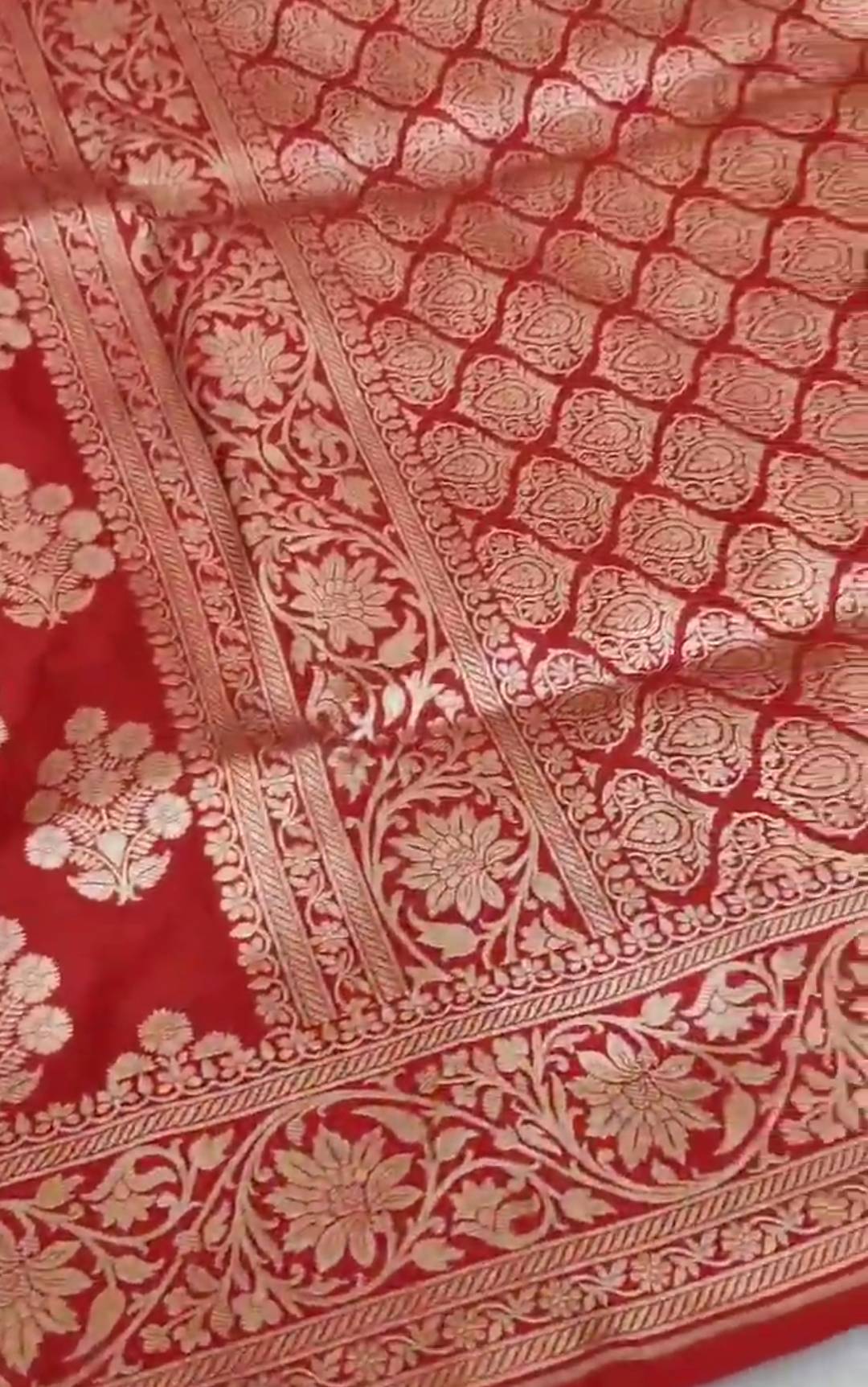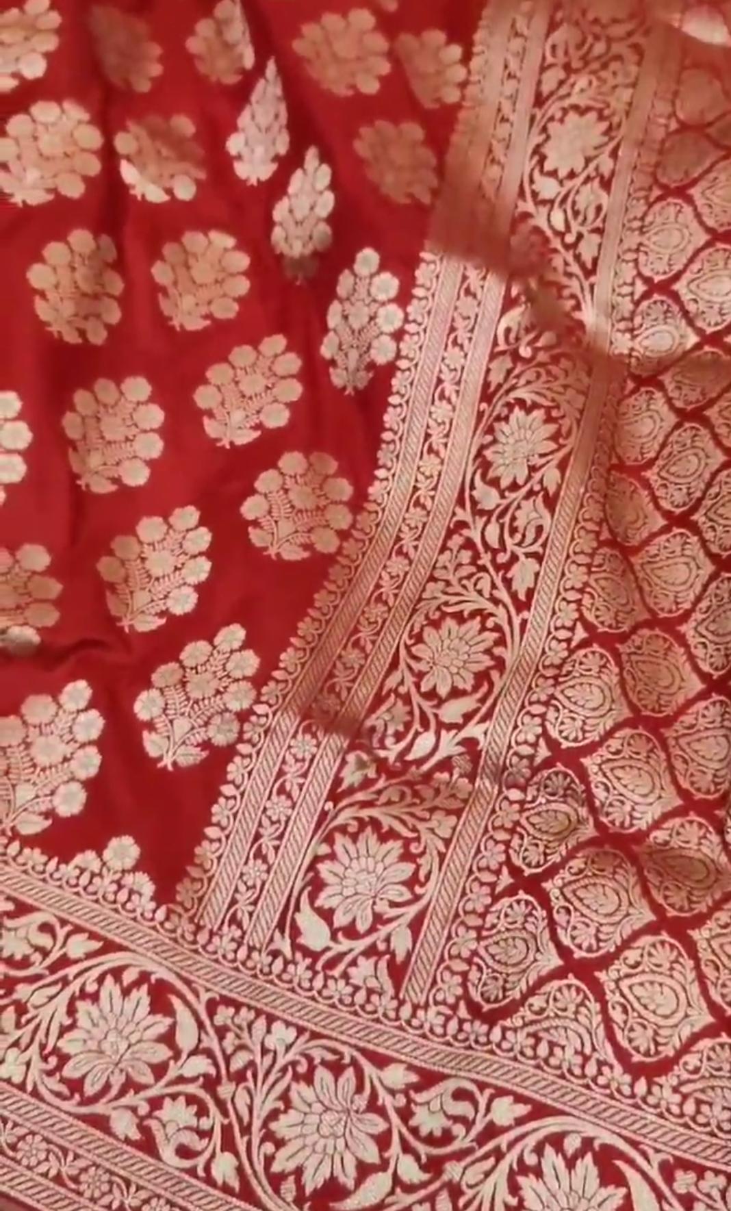 Red Banarasi Handloom Katan Silk Chand Tara Bridal Saree