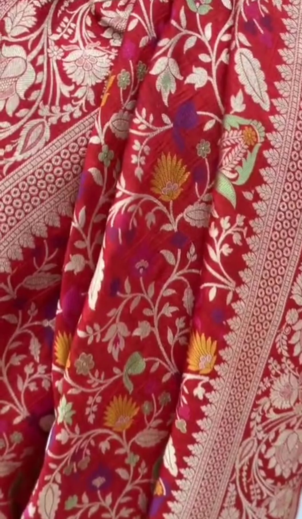 Red Banarasi Handloom Katan Silk Meenakari Saree