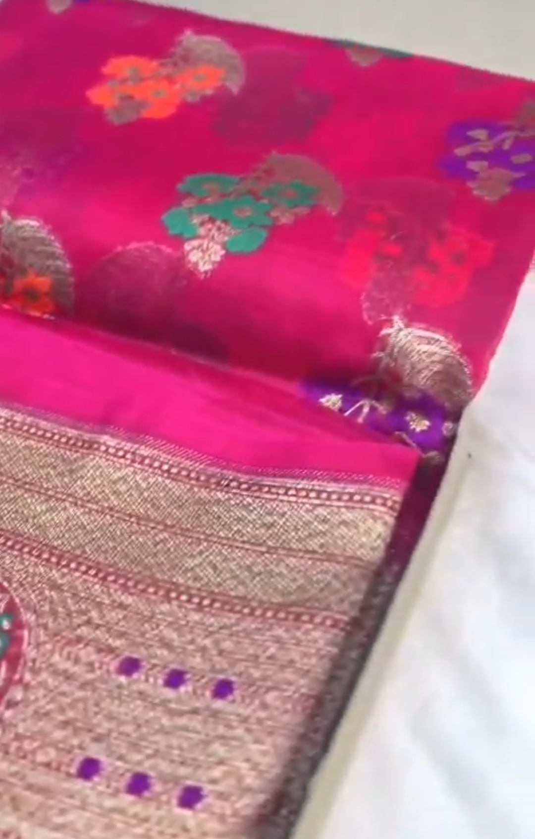 Hot Pink Banarasi Handloom Kora Organza Silk Saree
