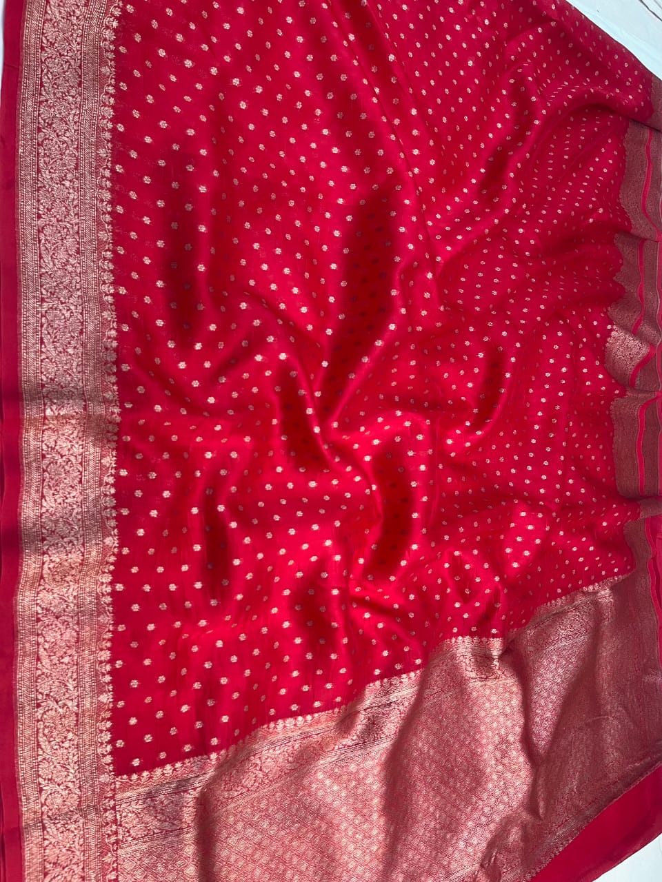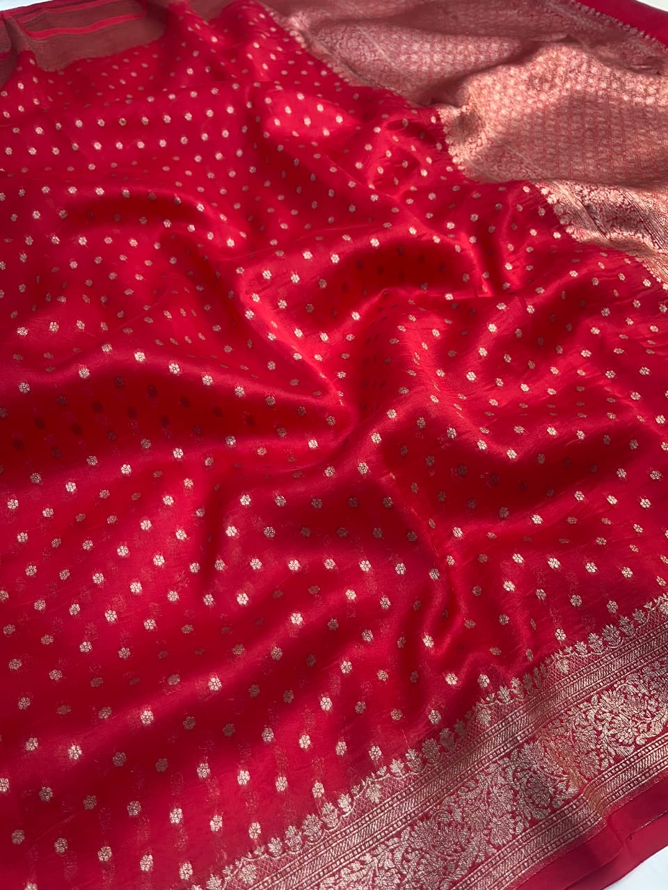 Rustic Red Banarasi Handloom Kora Organza Silk Saree