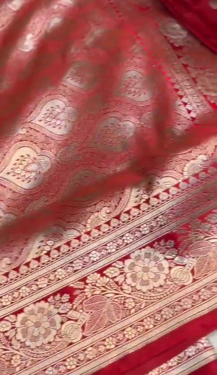 Deep Red Banarasi Mashru Soft Silk Saree