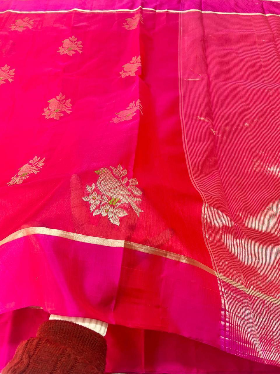 Hot Pink Chanderi Handloom Pattu Silk Brocade Saree