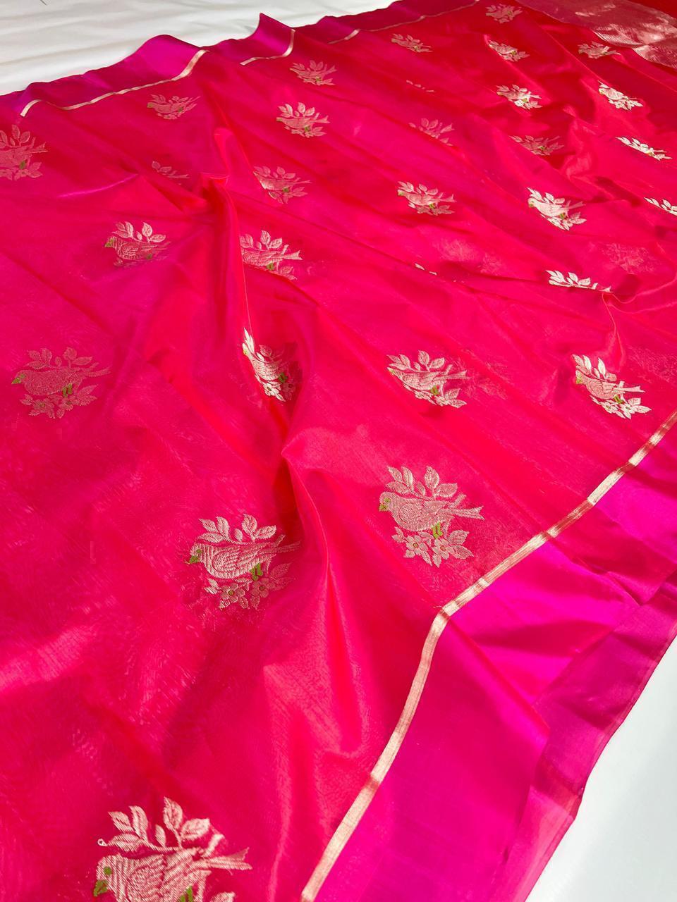 Hot Pink Chanderi Handloom Pattu Silk Meenakari Saree