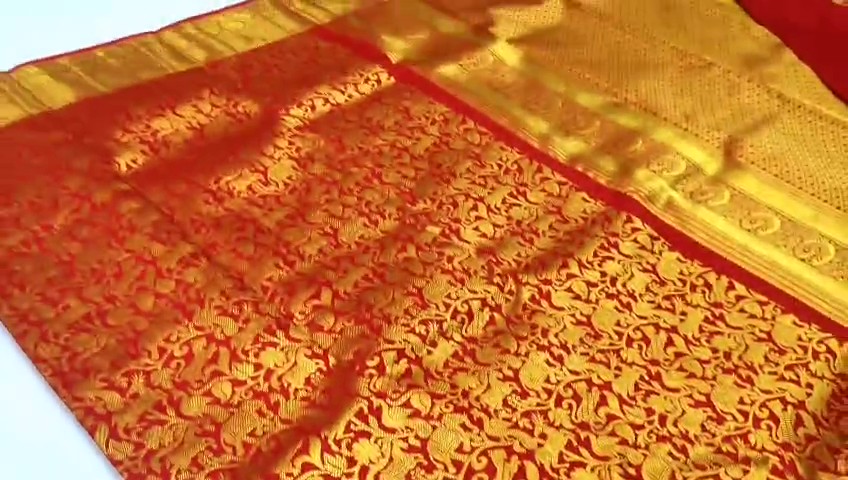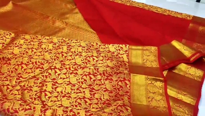 Red Kanchipuram Handloom Tissue Brocade Silk Bridal Saree