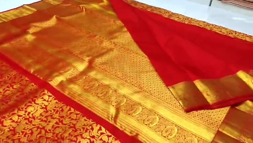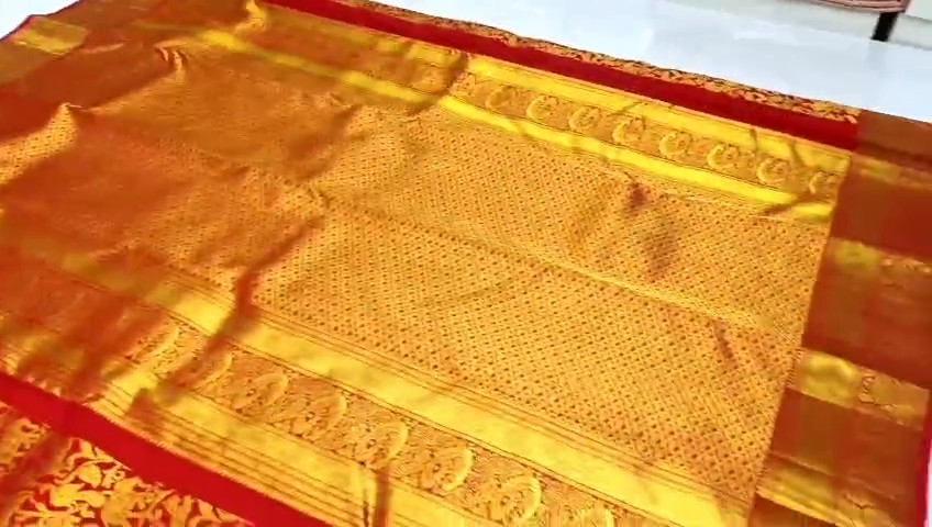 Gold & Red Kanchipuram Handloom Kalanjali Tissue Brocade Bridal Silk Saree