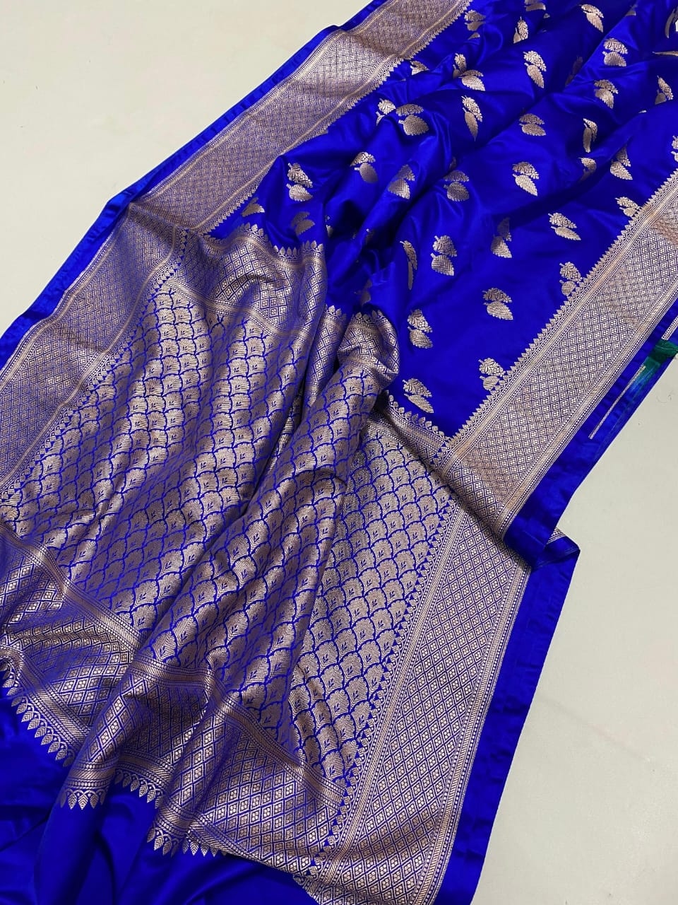Royal Blue Banarasi Mashru Soft Silk Saree