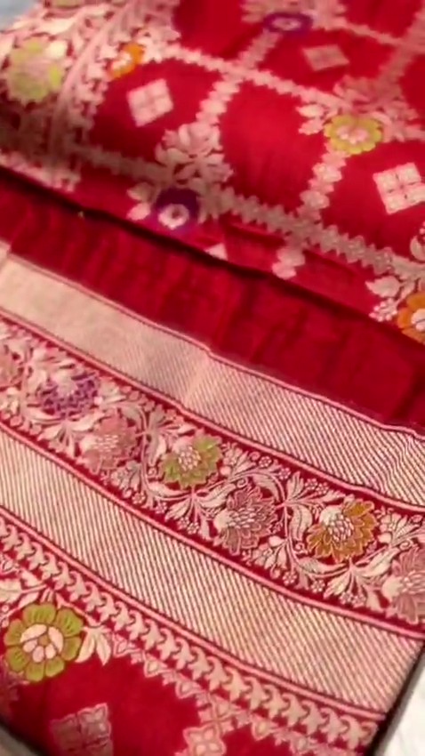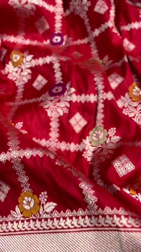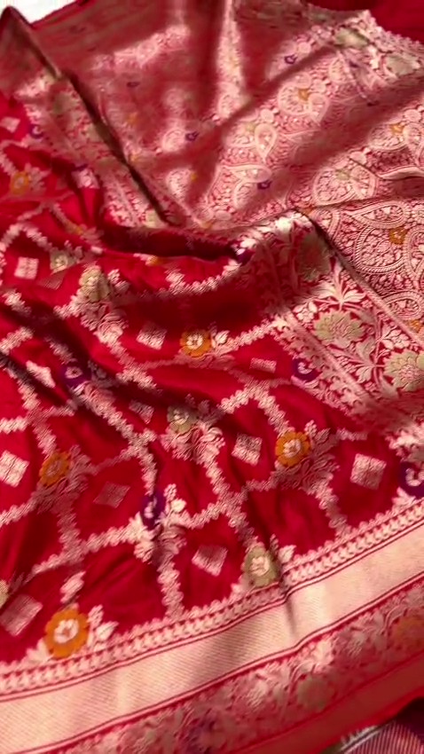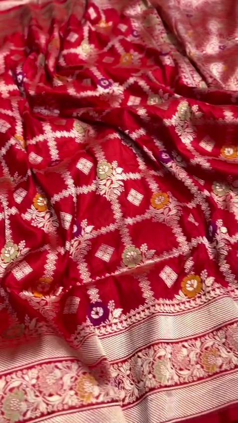 Red Banarasi Handloom Katan Silk Meenakari Saree