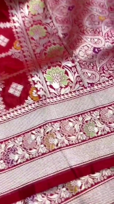 Red Banarasi Handloom Katan Silk Chand Tara Bridal Saree