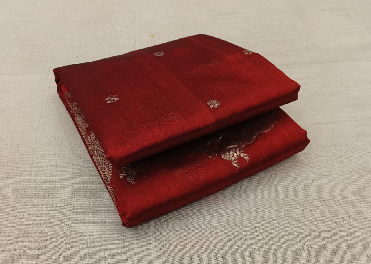 Red Chanderi Handloom Pattu Silk Saree