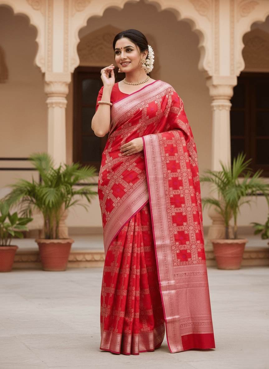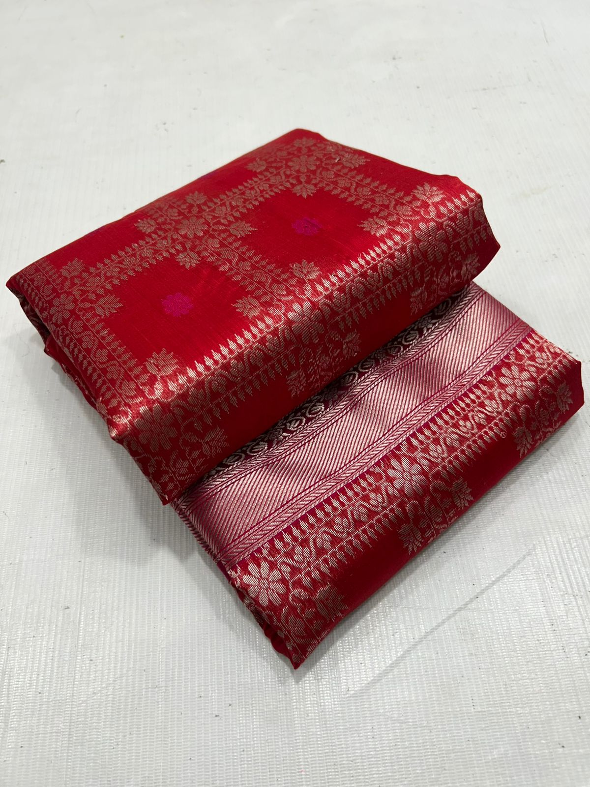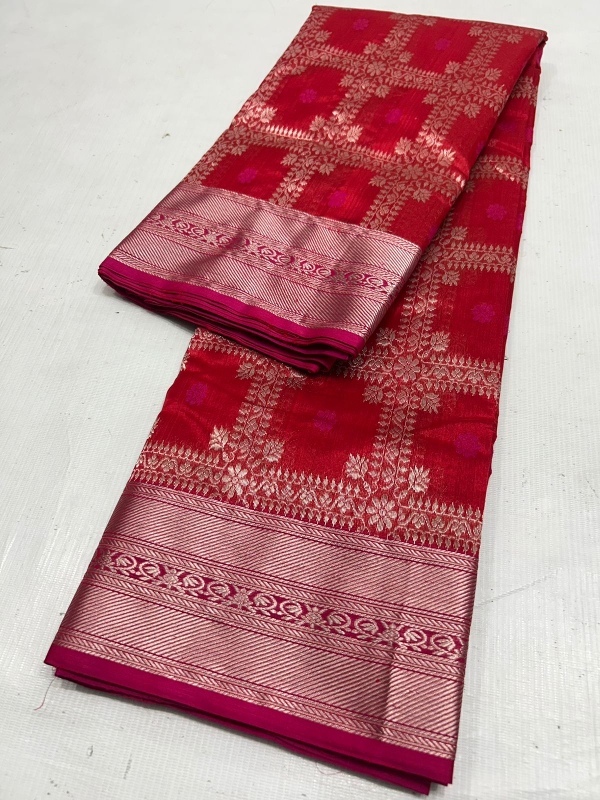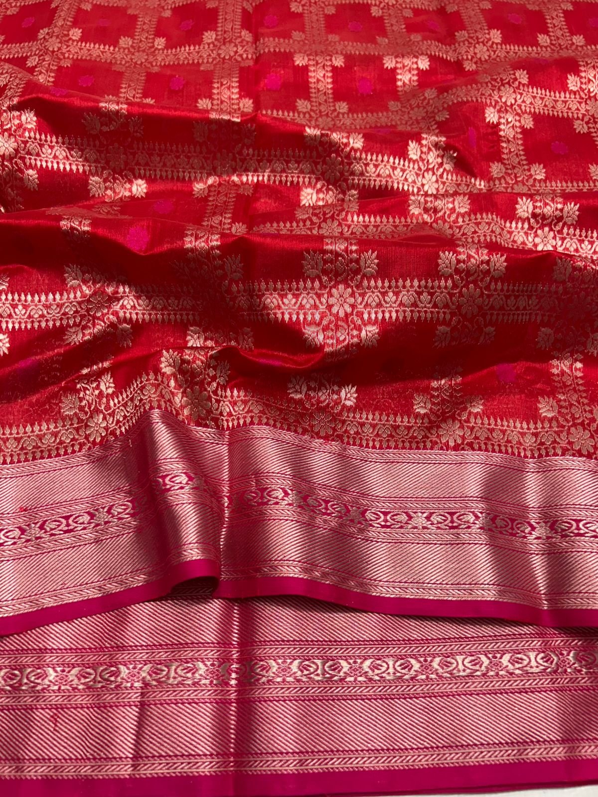 Red Chanderi Handloom Pattu Silk Bridal Saree