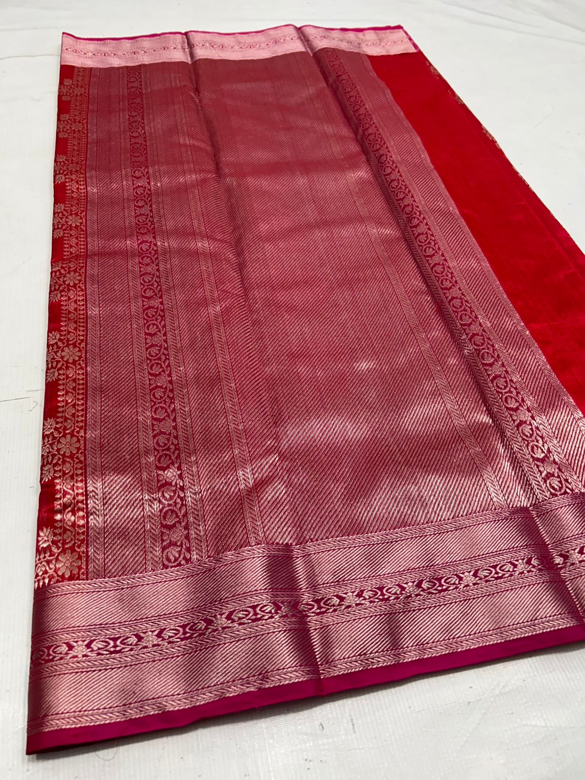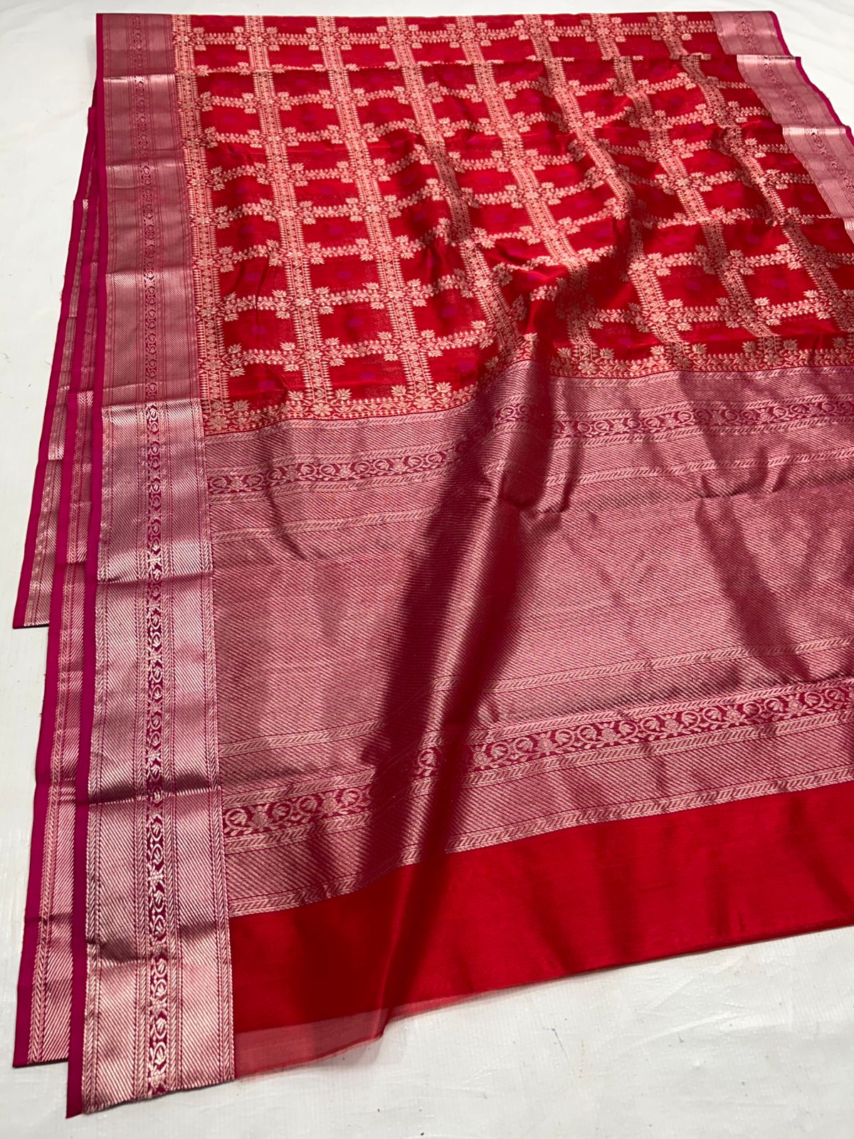 Red Chanderi Handloom Pattu Silk Meenakari Saree