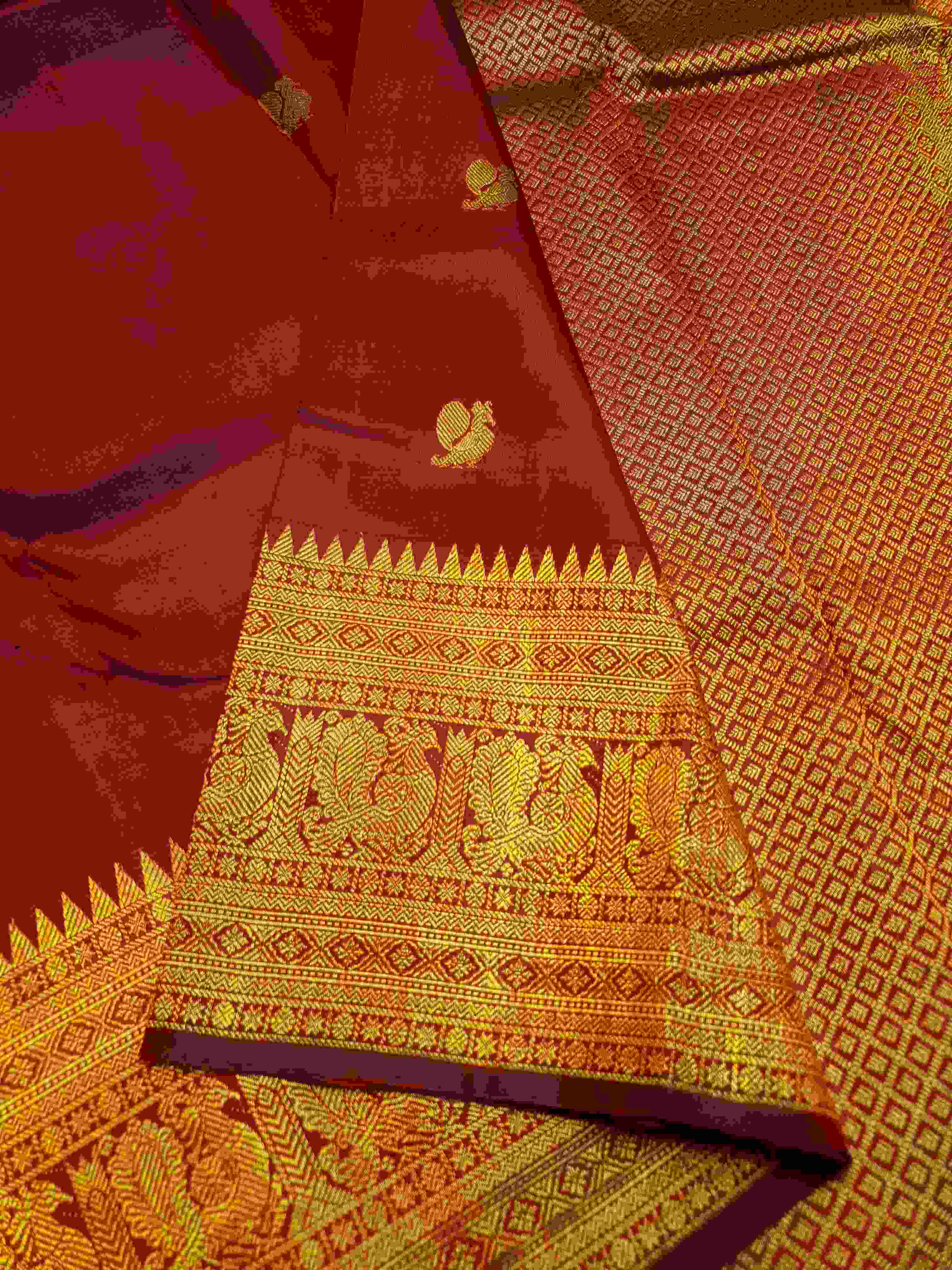 Rustic Red Kanchipuram Handloom 2G Gold Pattu Silk Saree