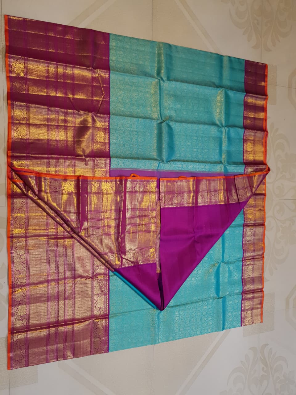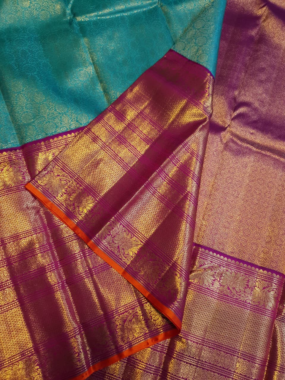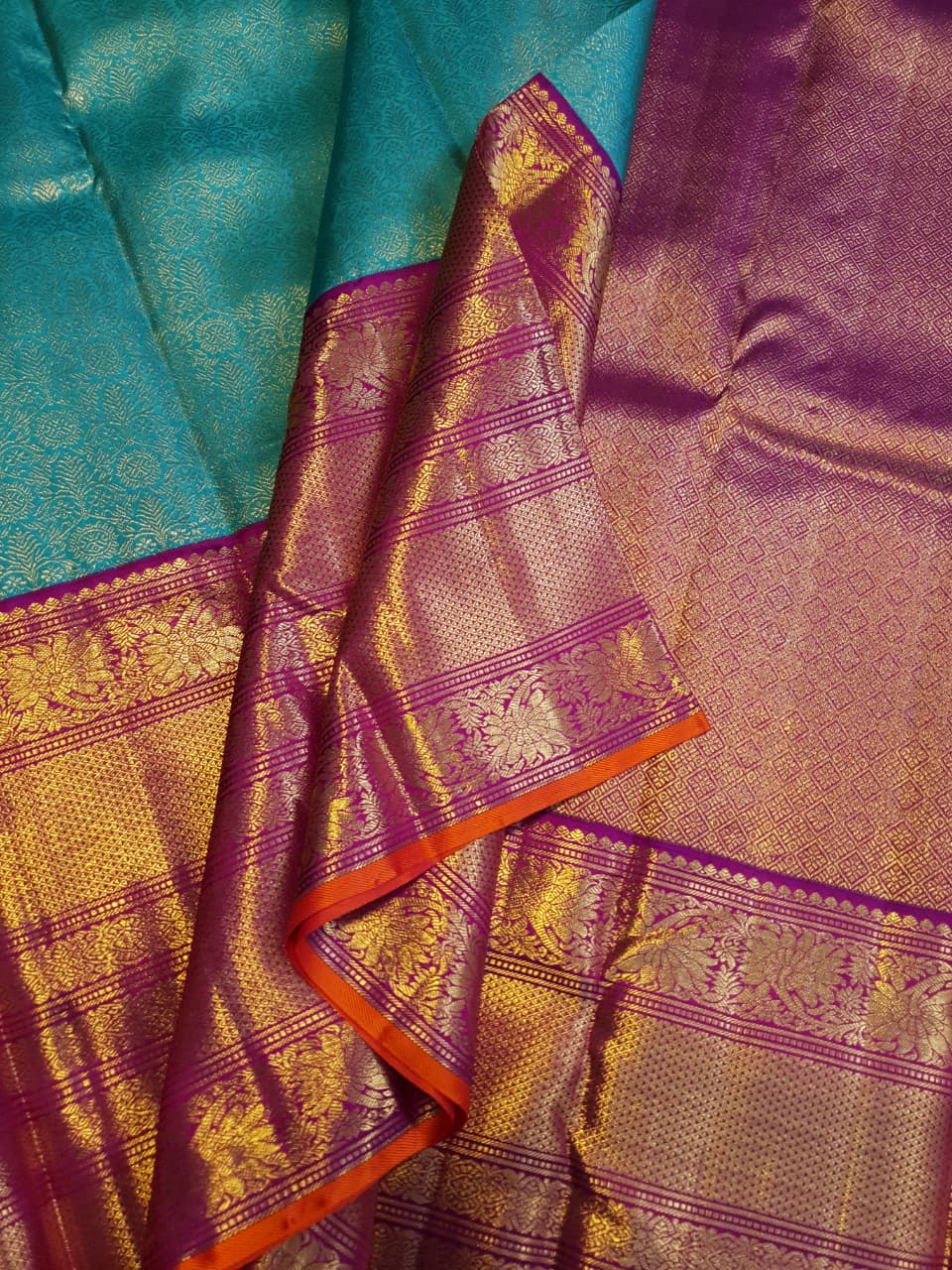 Turquoise Kanchipuram Handloom 2G Gold Pattu Silk Saree