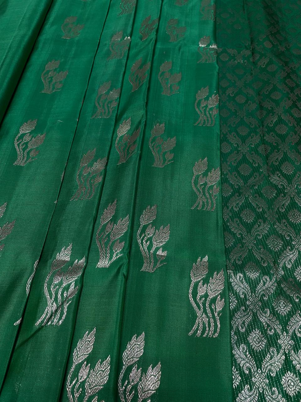 Bottle Green Venkatagiri Handloom Pattu Silk Saree