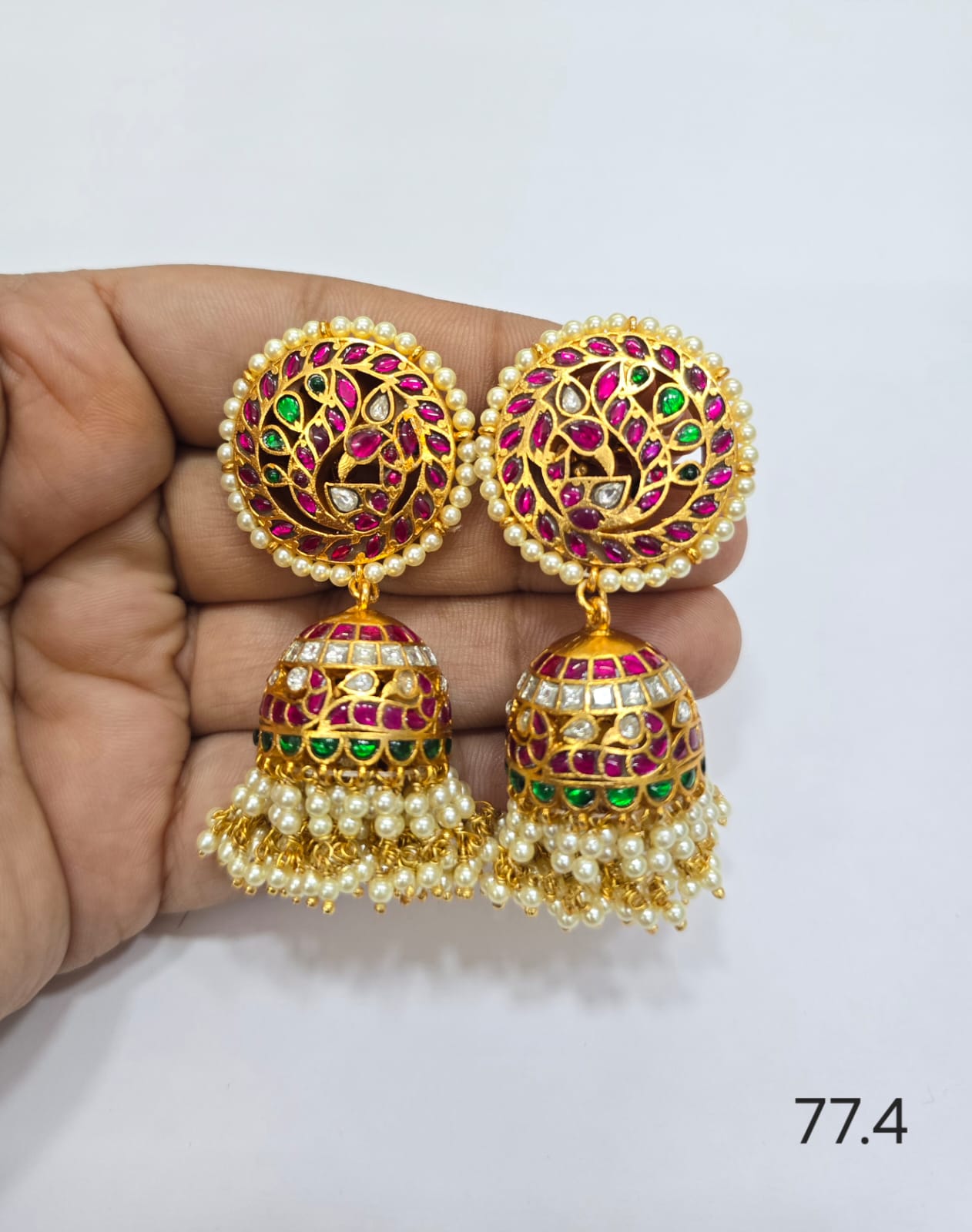 Silver 925 Jadau Jewelry, Silver 925 Jadau Earrings, Silk Tatva Handcrafted Premium Jadau Jewelry, Silver 925 Gold Plated Jadau Earrings
