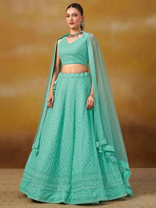 Sky Blue Designer Lehenga with Sequins & Dupatta
