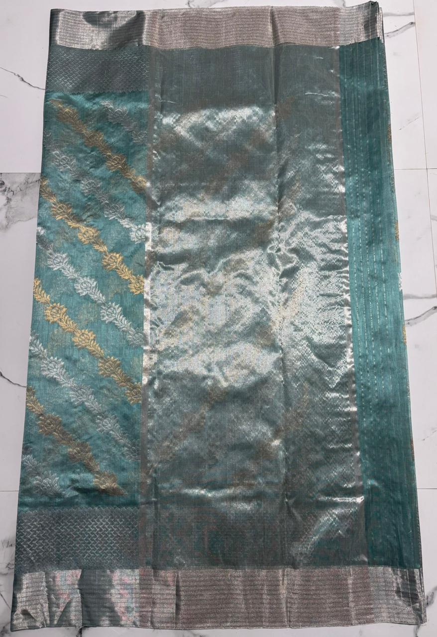 Turquoise Chanderi Handloom Pattu Silk Handwork Saree