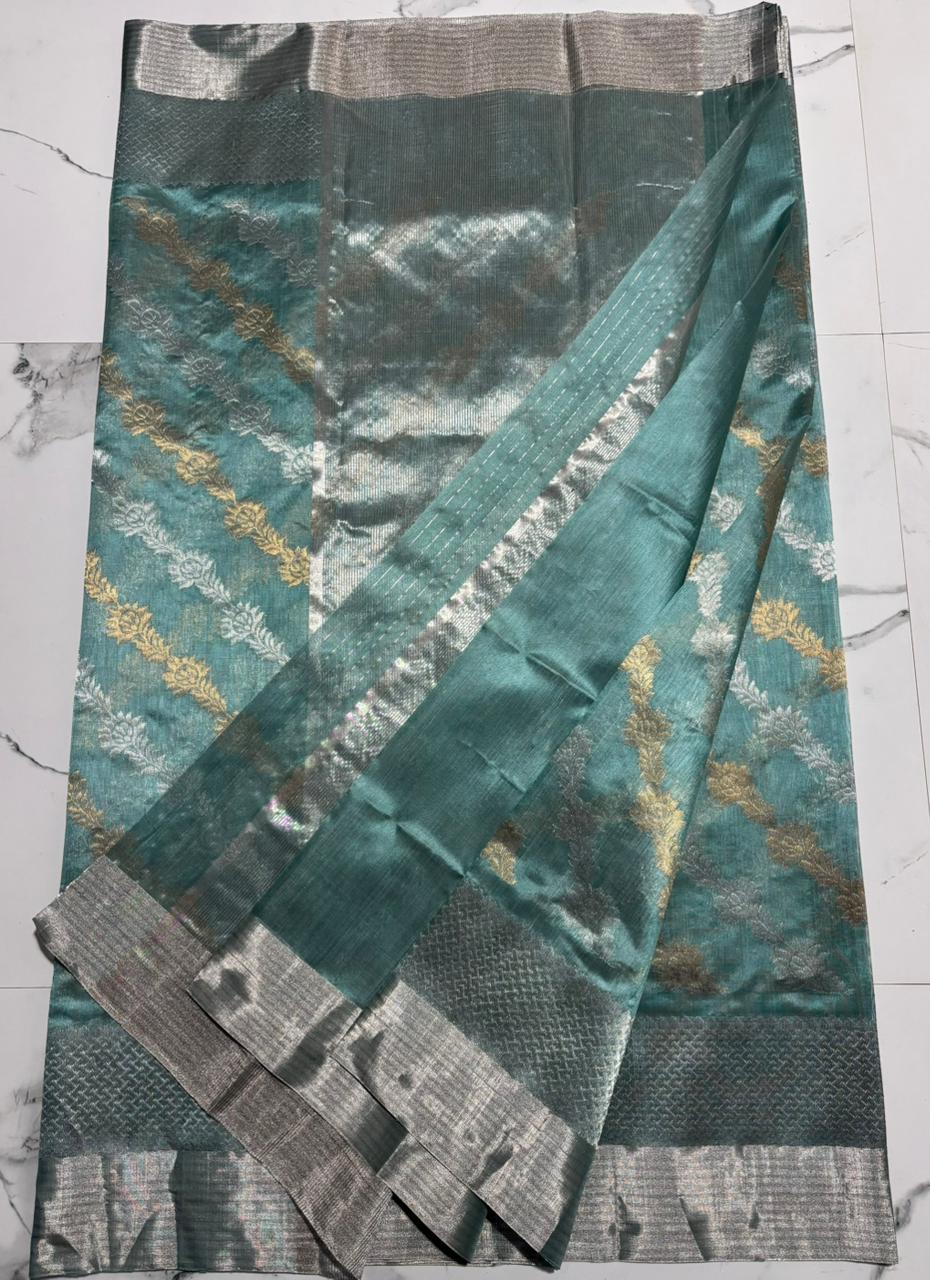 Sea Green Chanderi Handloom Pattu Silk Meenakari Saree
