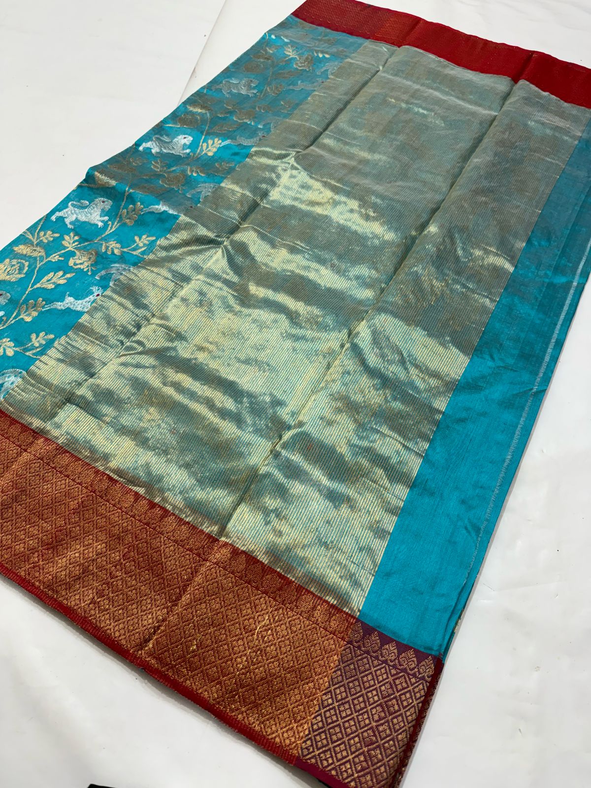 Chanderi Handloom Pure Pattu Silk Jungle Theme Sarees